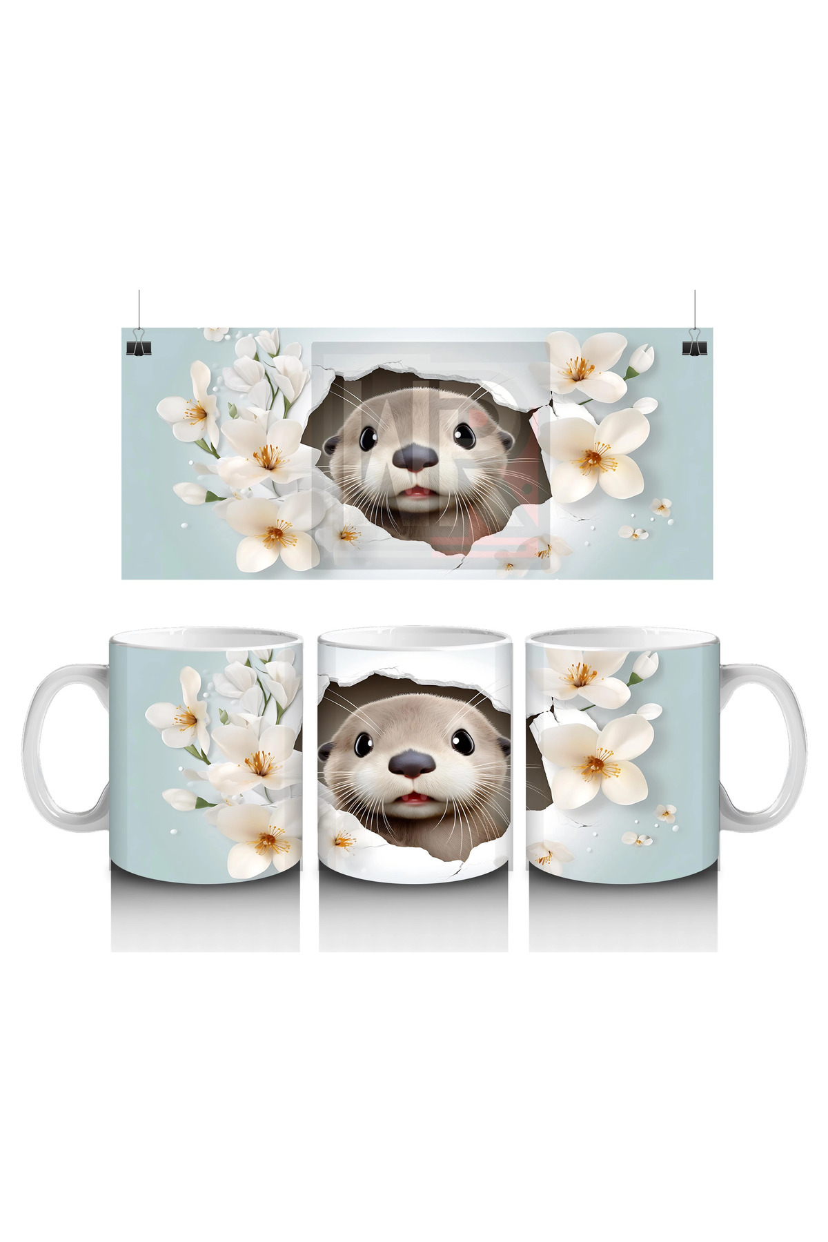 ميزات سامور يبتسم بين فروع الكرز - كوب مطبوع من Wisdom Rain