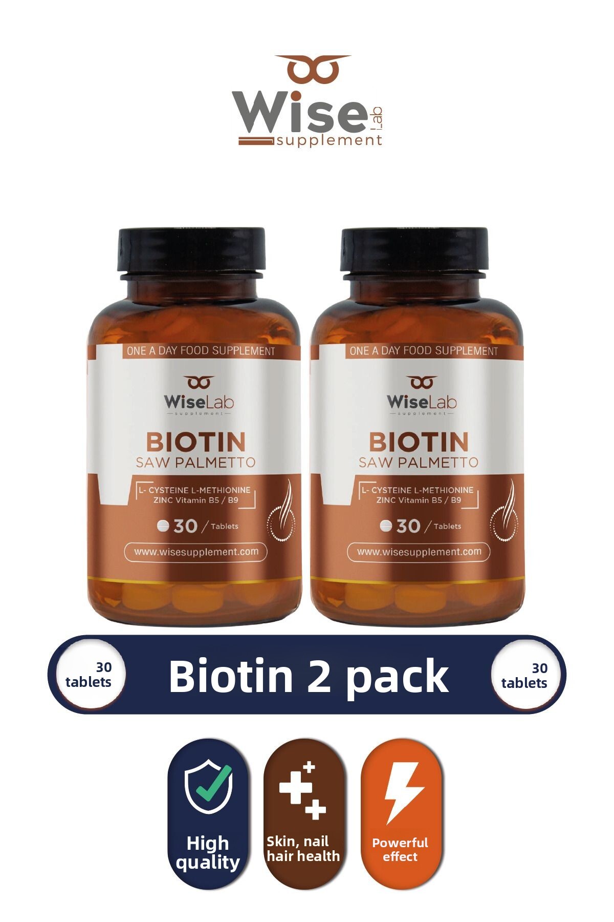 WiseLab بيوتين 2500 ماك جرام 30 قرص حزمة من 2
