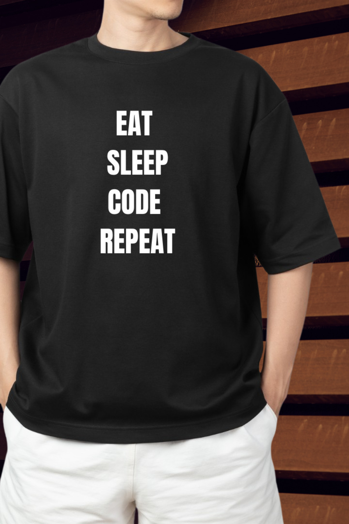 Wish BF تي شيرت كبير الحجم مطبوع عليه Eat Sleep Code Repeat