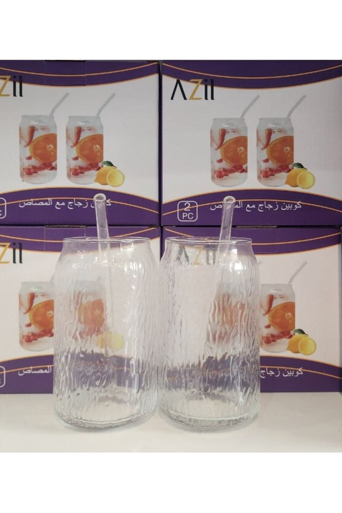 Without a mark كوبين زجاج مع مصاص