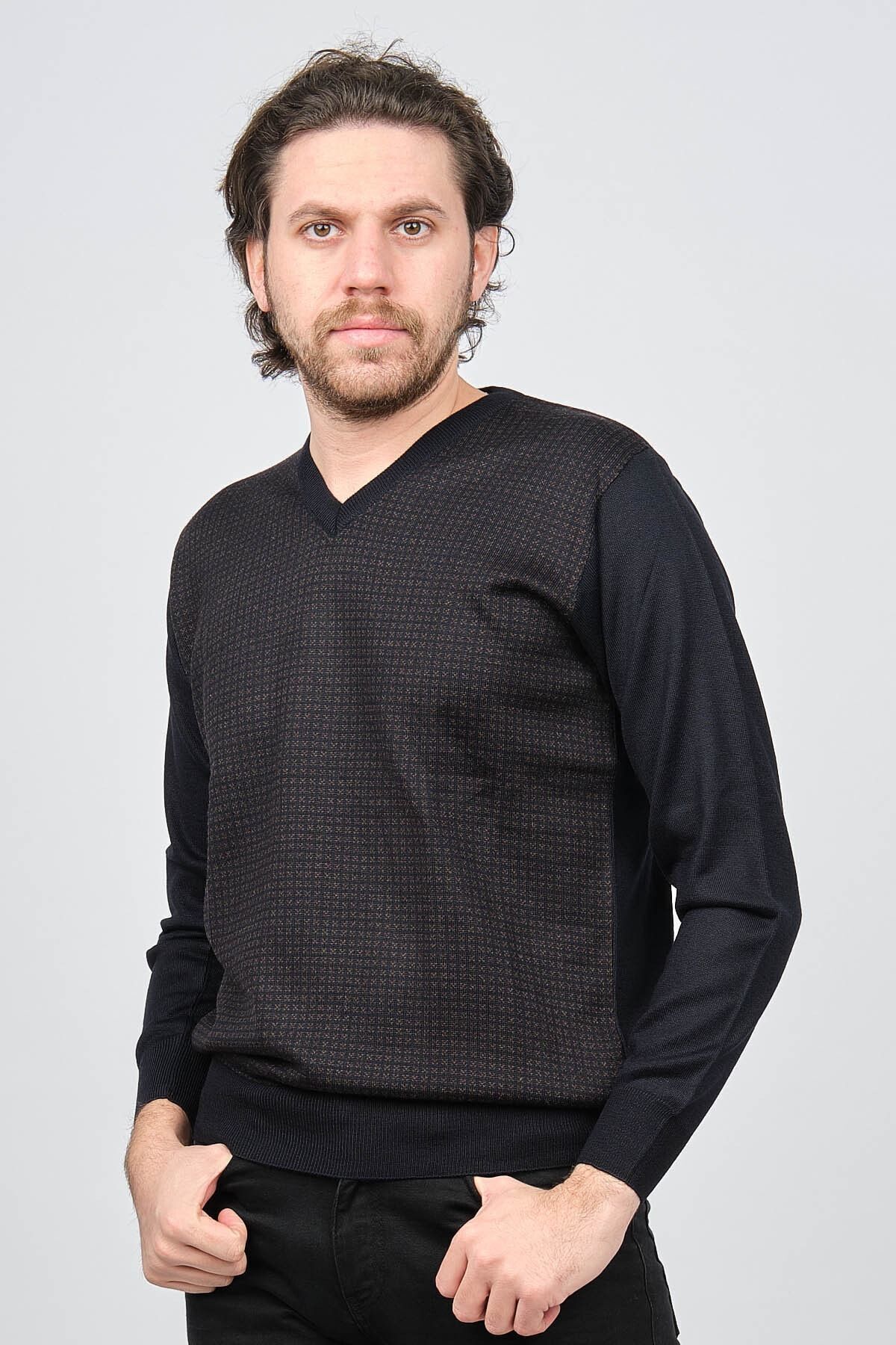 ميزات سترة صوف منقوشة برقبة على شكل حرف V للرجال من Woolen World