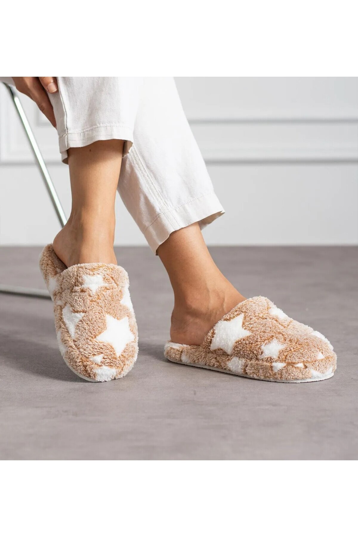 ميزات شبشب منزلي مغلق من الأمام مرصع بالنجوم من WOSSE
