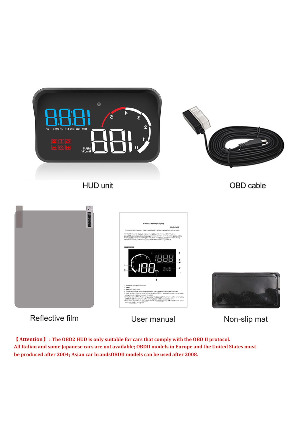 ميزات M10 OBD2 HUD Display شاشة عرض الزجاج الأمامي جهاز عرض درجة حرارة الماء السرعة الزائدة دورة في الدقيقة الجهد إنذار سماعة الرأس من WYING