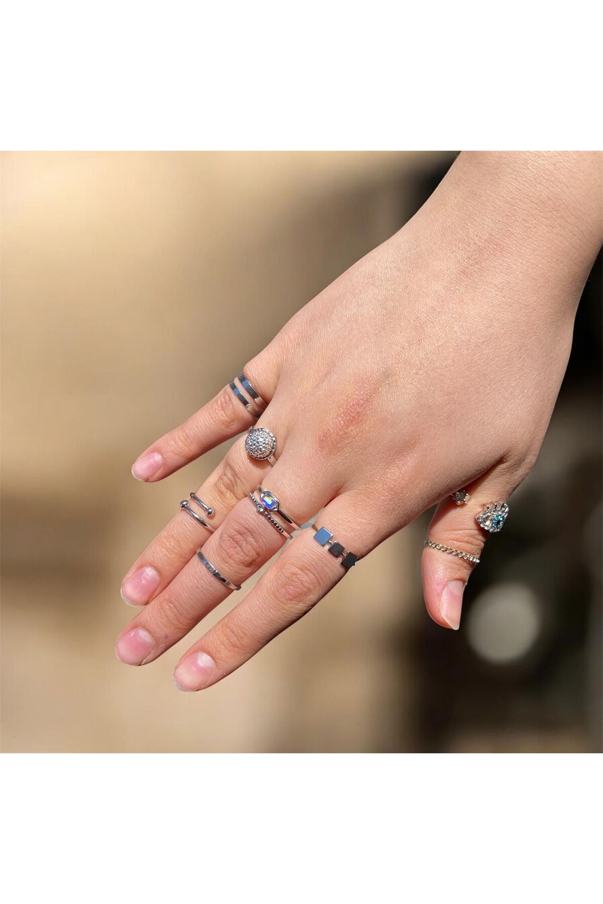 ميزات طقم خواتم مفصلية مكون من 8 قطع طقم خواتم فضية اللون من xesha
