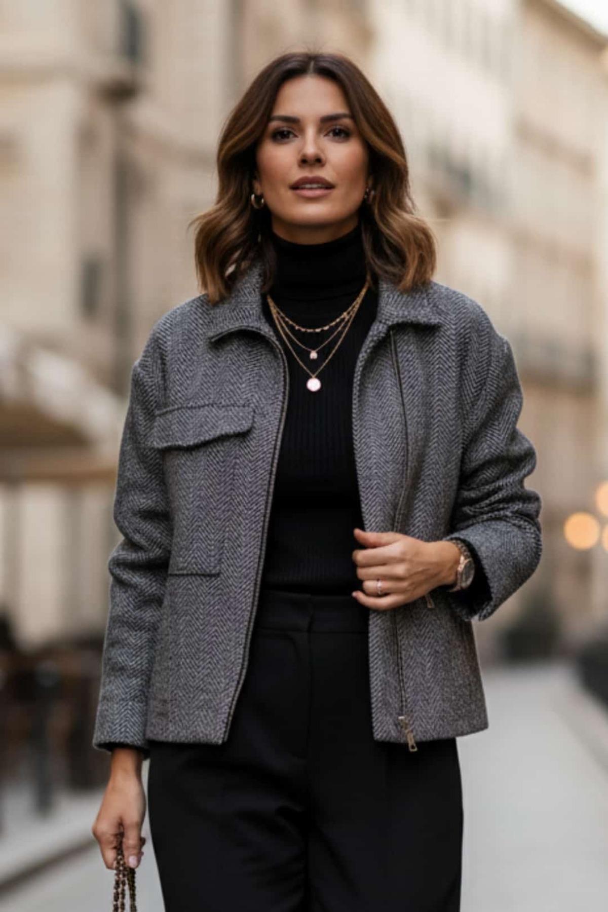 ميزات سترة بومبر بنمط جلد السمكة من Yağmur Butik