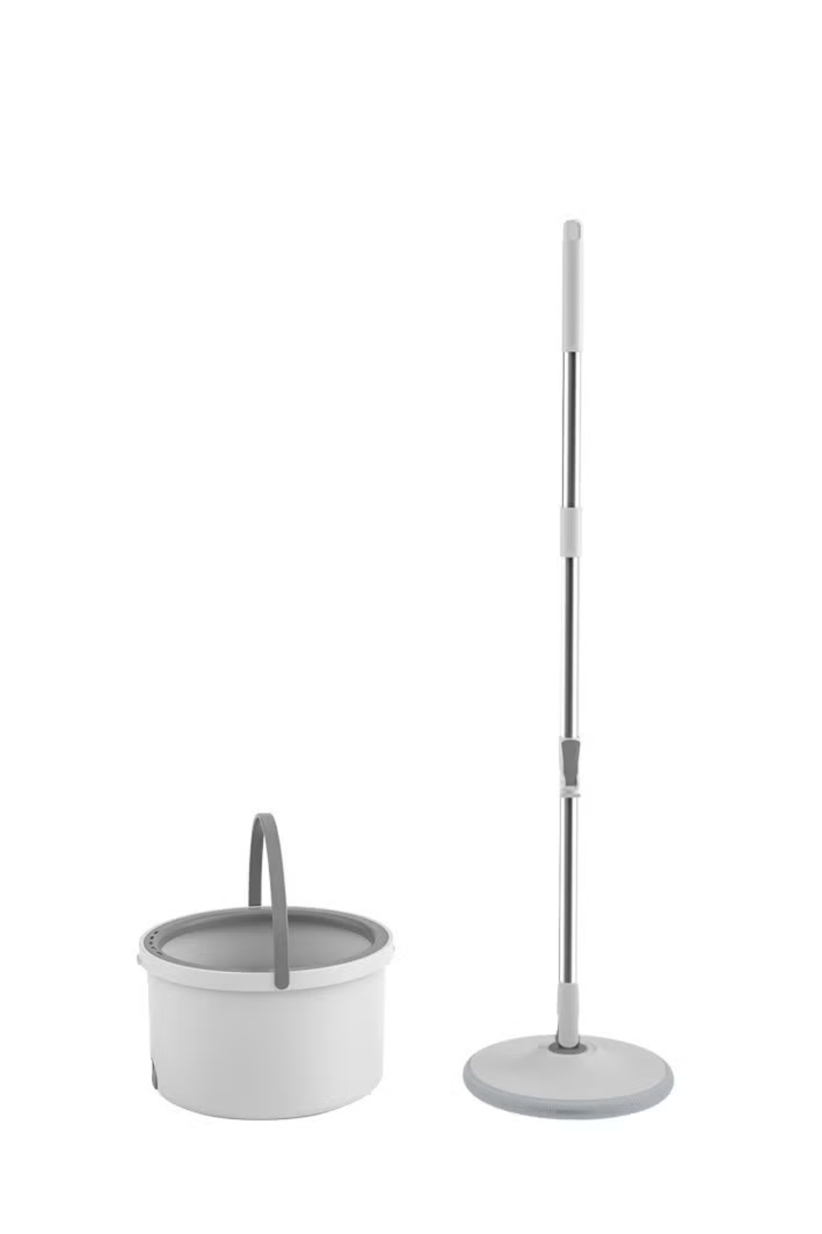قم بتجميع الأجزاء، واربط الفوطة، وأضف الماء/المنظف إلى الدلو، واضغط على الممسحة في الحاوية لعصرها ثم قم بالتنظيف؛ كرر العملية حسب الحاجة.