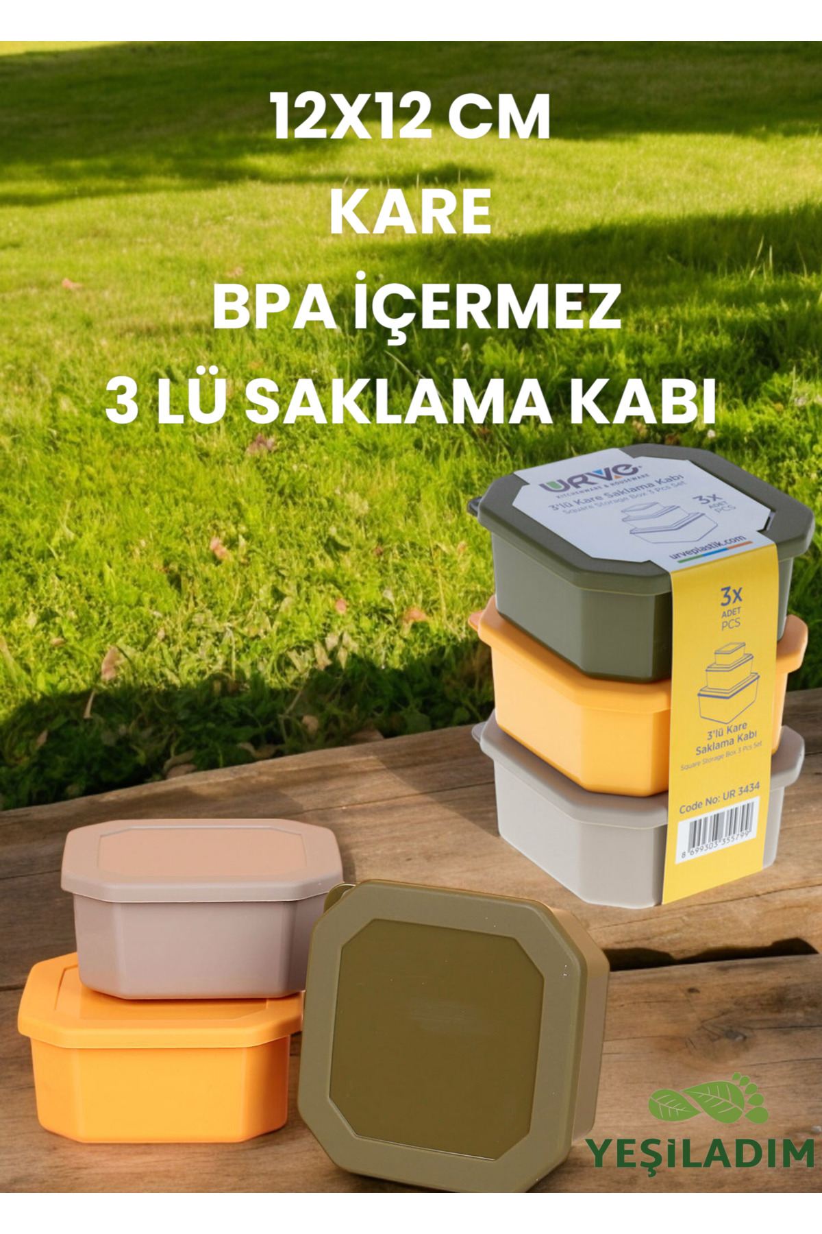 ميزات حاوية تخزين مربعة مقاس 10 × 13 سم خالية من مادة BPA مكونة من 3 قطع من Yeşil Adım