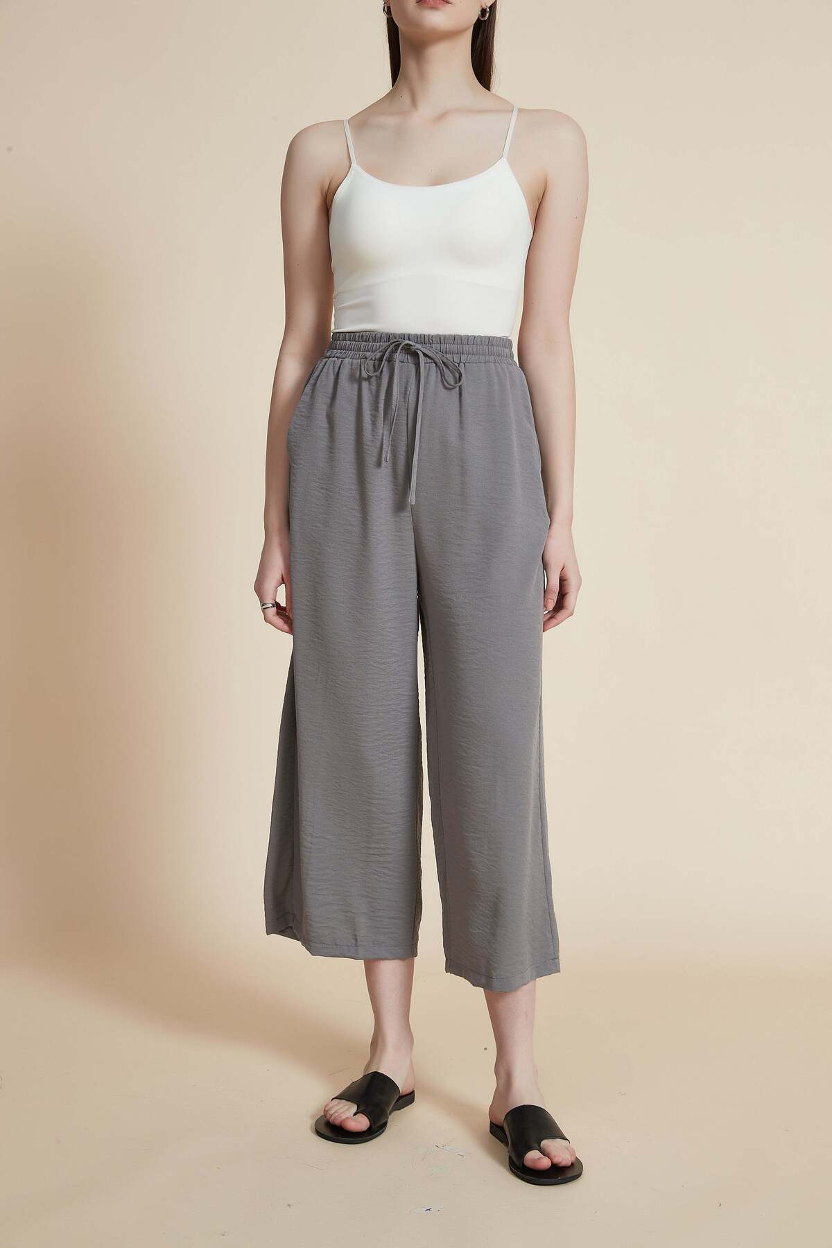 ميزات بنطلون ميدي فضفاض سادة من Yola