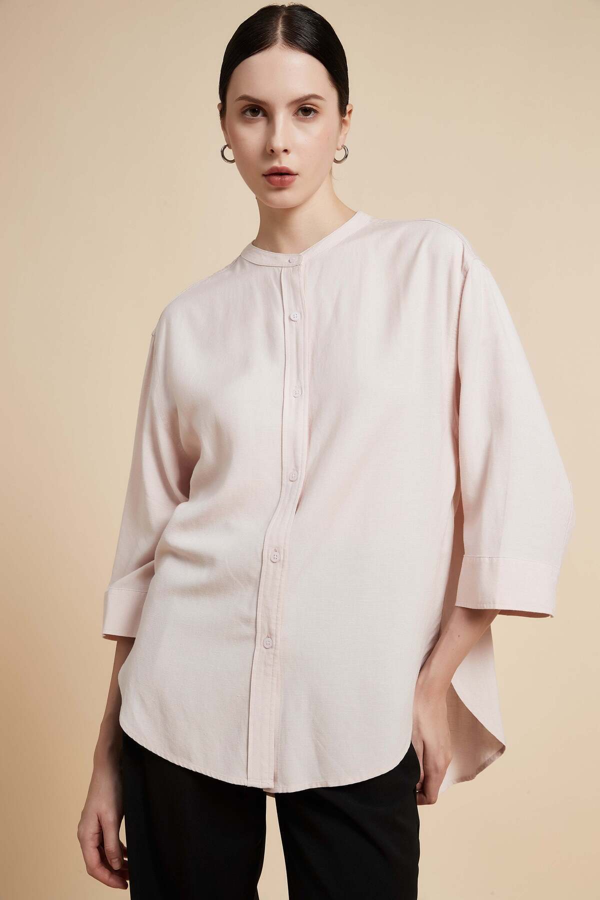 ميزات بلوزة سادة بأزرار أمامية من Yola