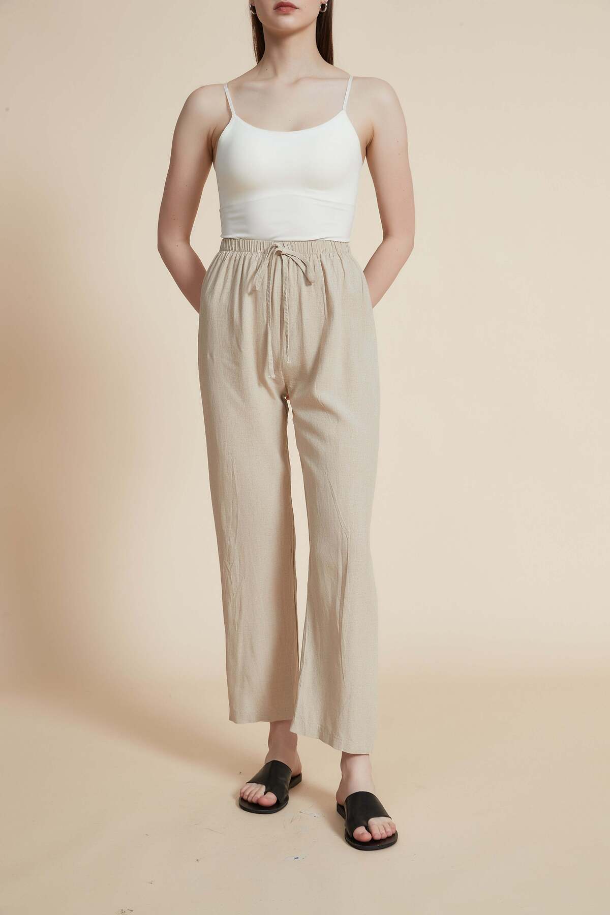ميزات بنطلون سادة بطول كامل من Yola