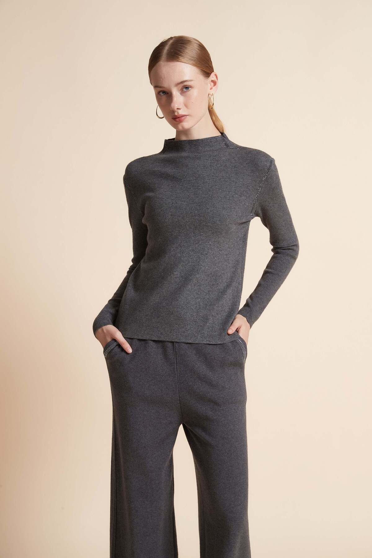 ميزات بلوزة سادة برقبة عالية وأكمام طويلة من Yola