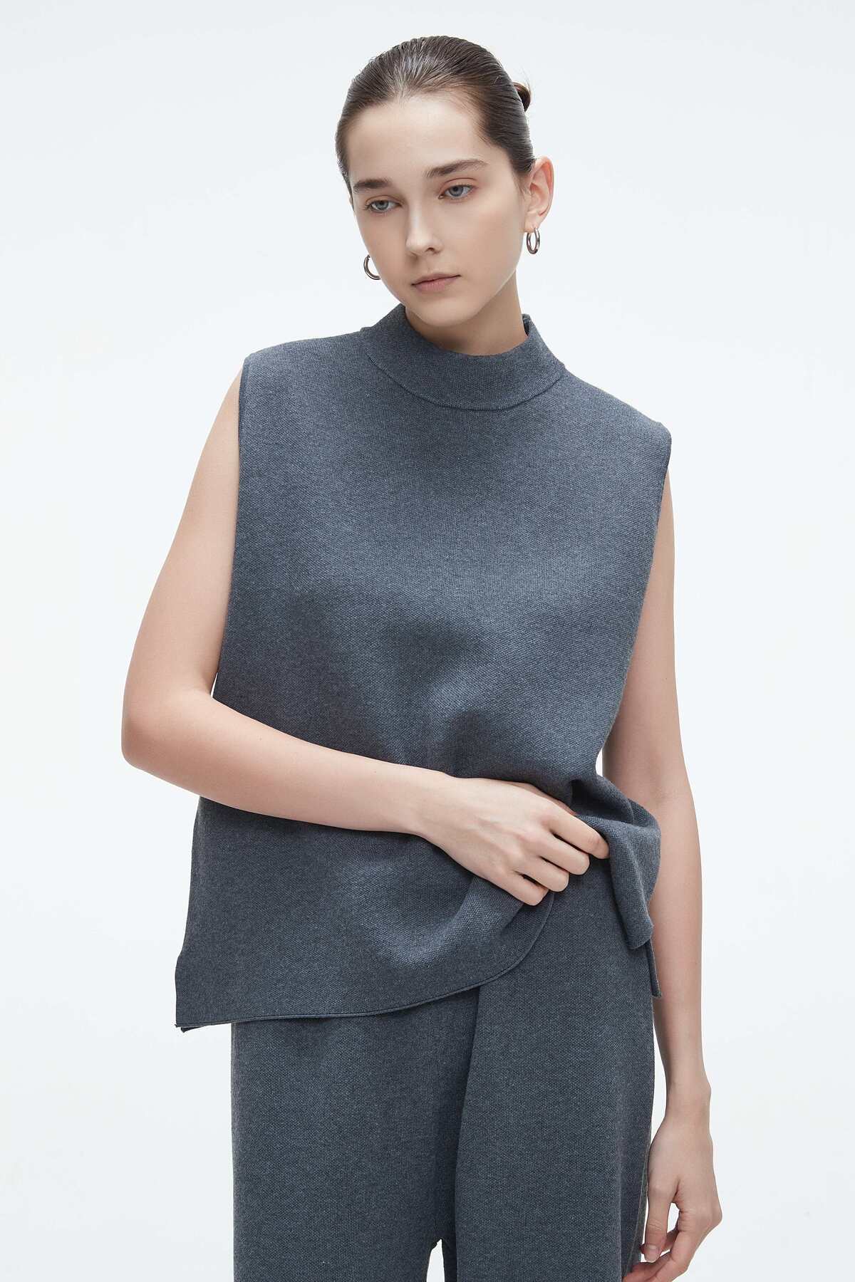 ميزات بلوزة سادة بدون أكمام وياقة عالية من Yola
