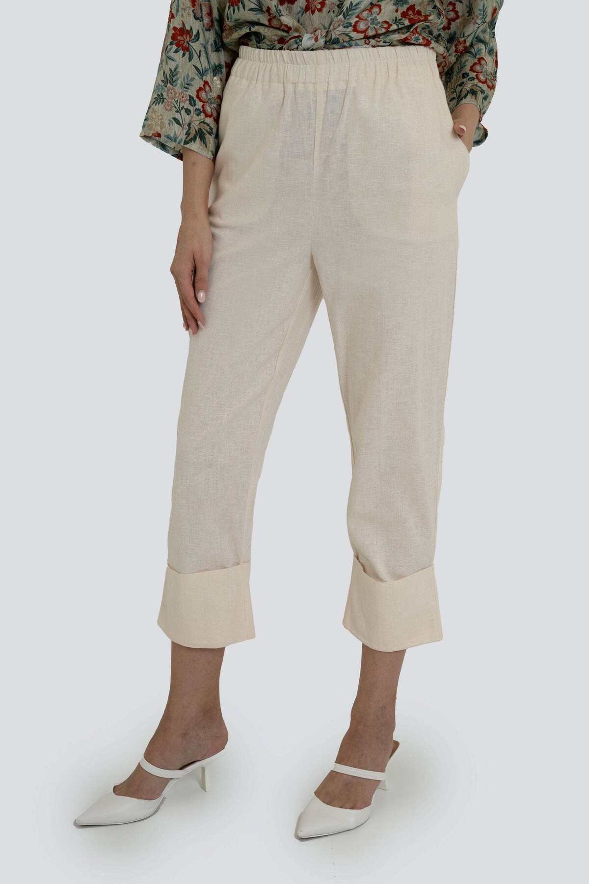 ميزات بنطلون سادة عالي الخصر من Yola