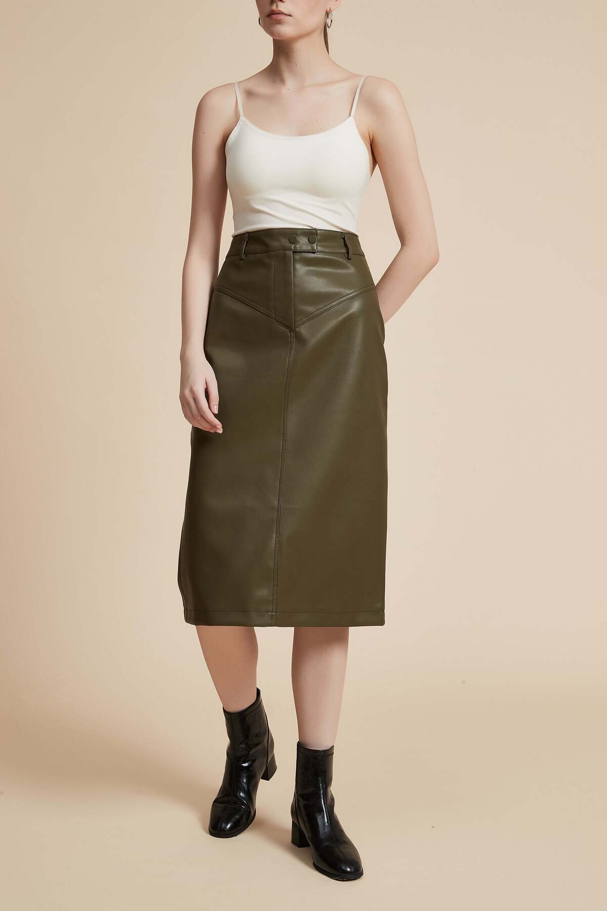 ميزات تنورة جلدية سادة بطول الركبة من Yola