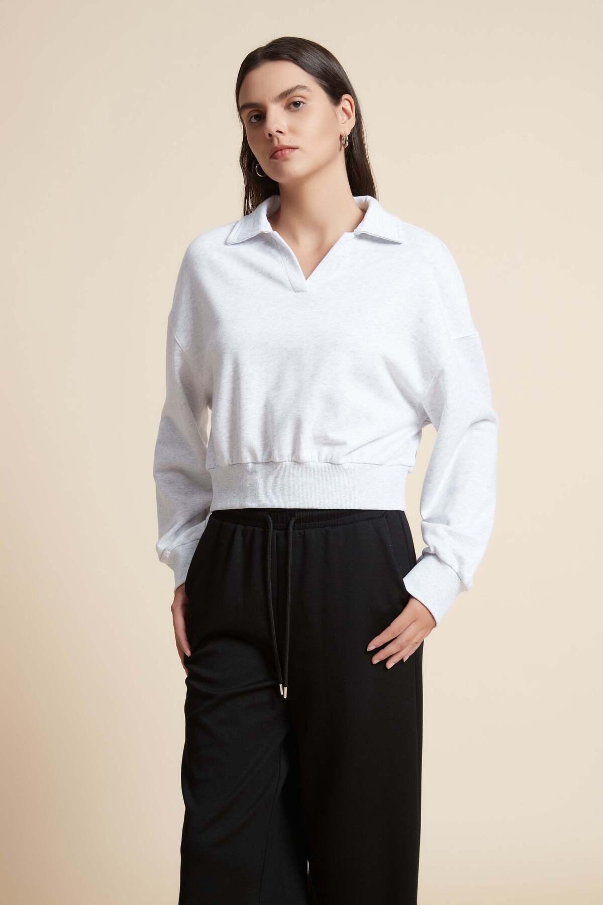ميزات بلوزة سادة بأكمام طويلة من Yola