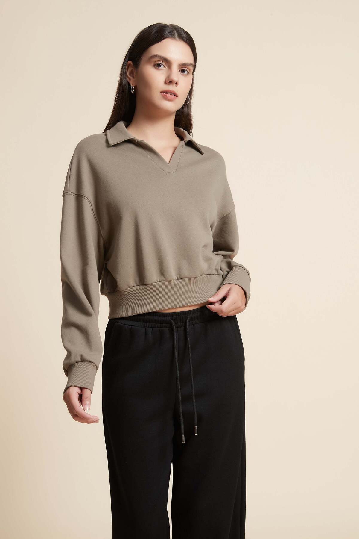 ميزات بلوزة سادة بأكمام طويلة من Yola