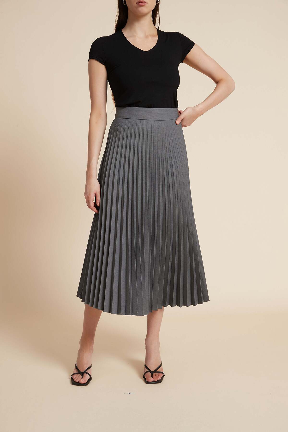 ميزات تنورة ميدي مطوية سادة من Yola