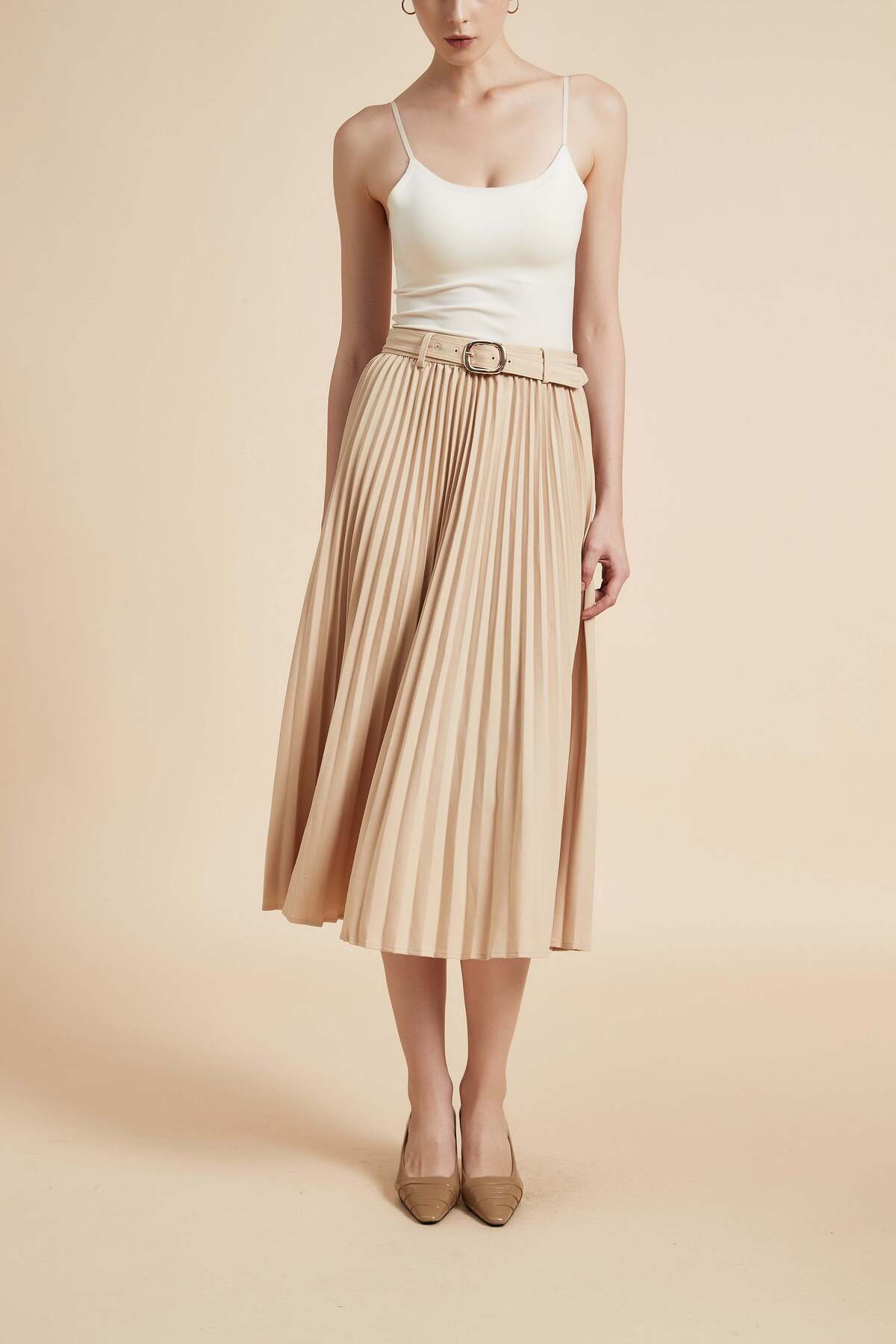 ميزات تنورة ميدي مطوية سادة من Yola