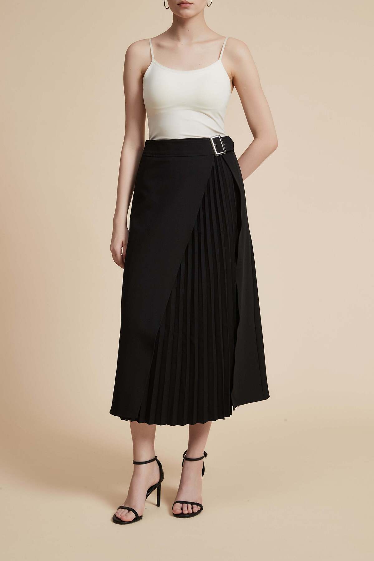 ميزات تنورة ميدي مطوية سادة من Yola
