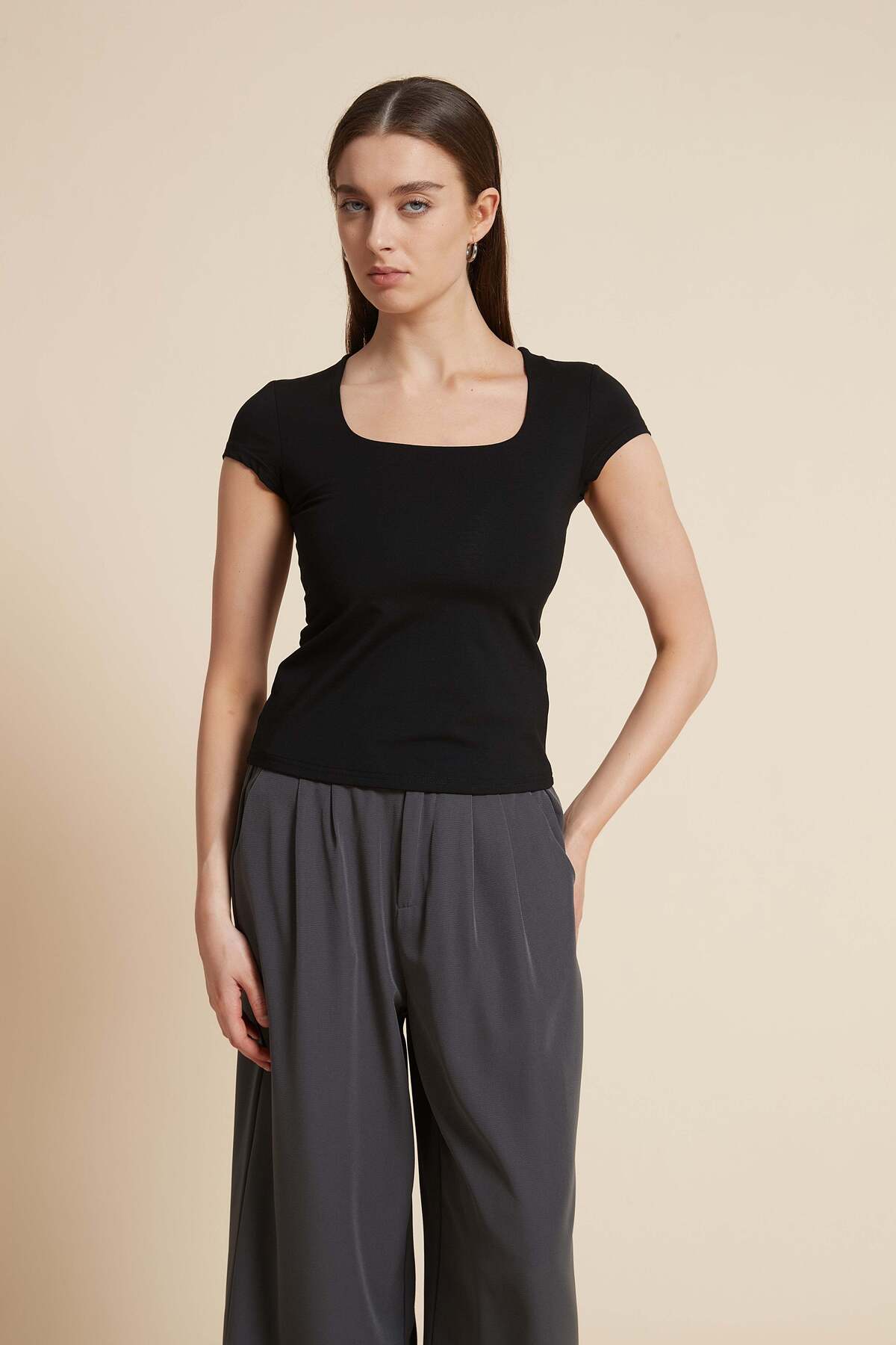 ميزات بلوزة سادة بأكمام قصيرة من Yola
