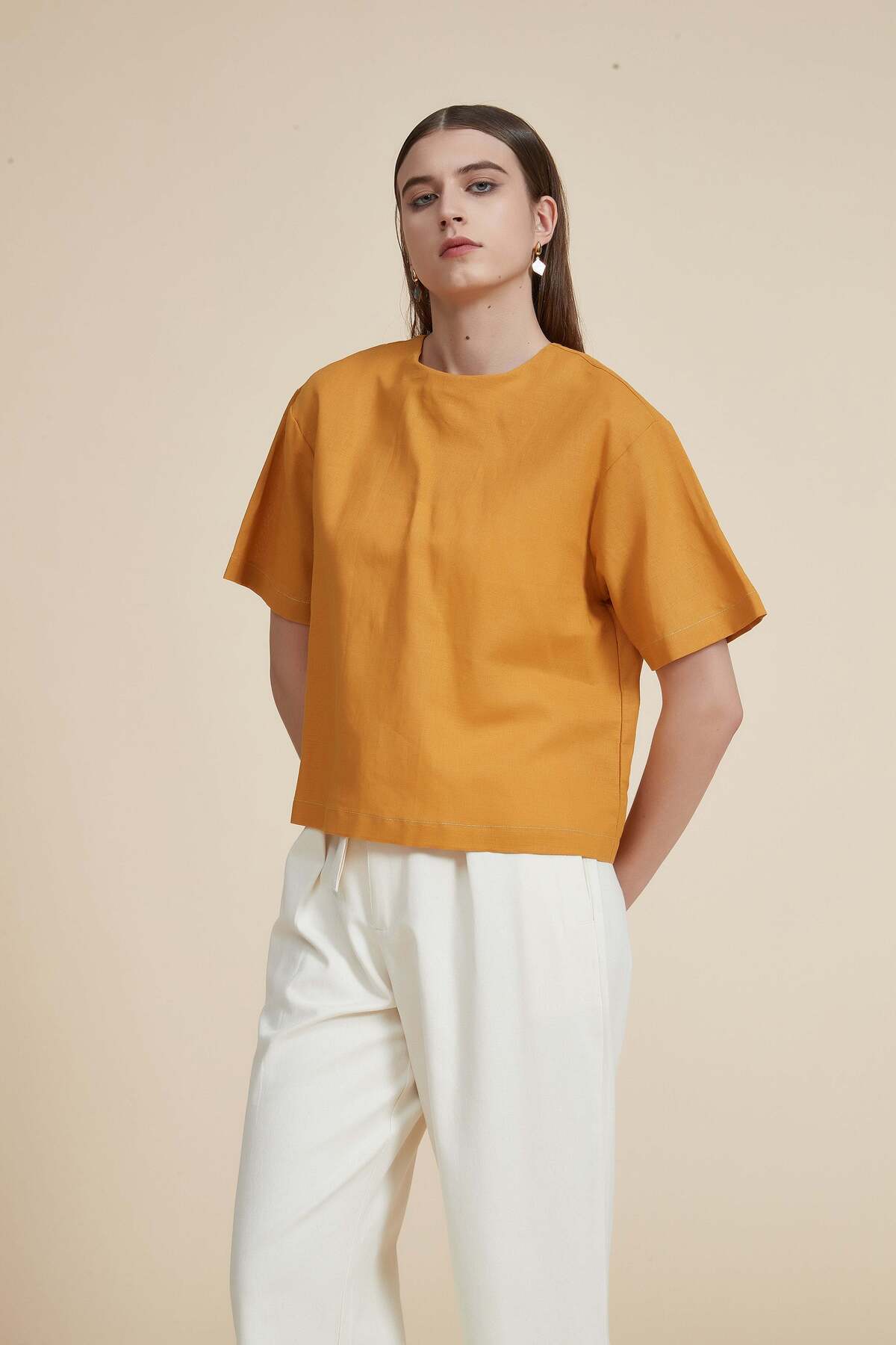 ميزات بلوزة سادة بطول الخصر من Yola