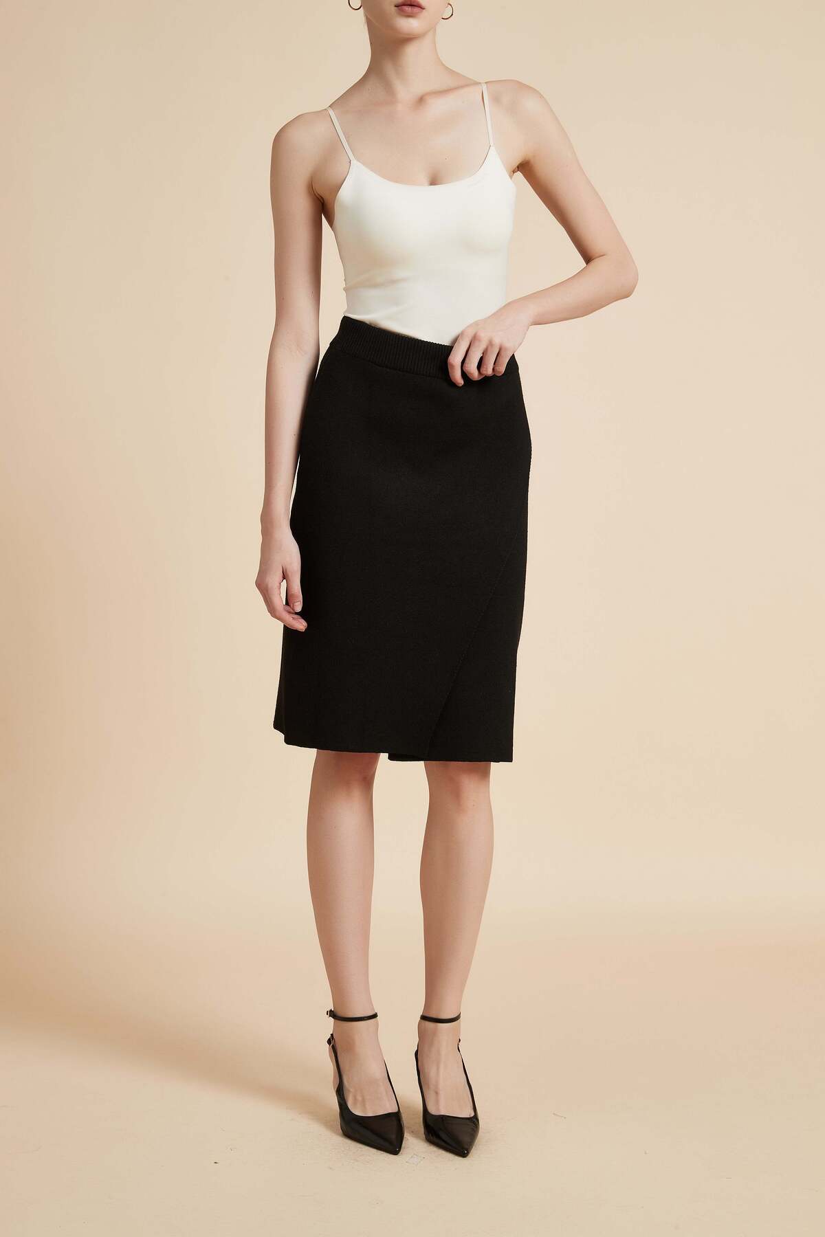 ميزات تنورة قصيرة ملفوفة سادة من Yola