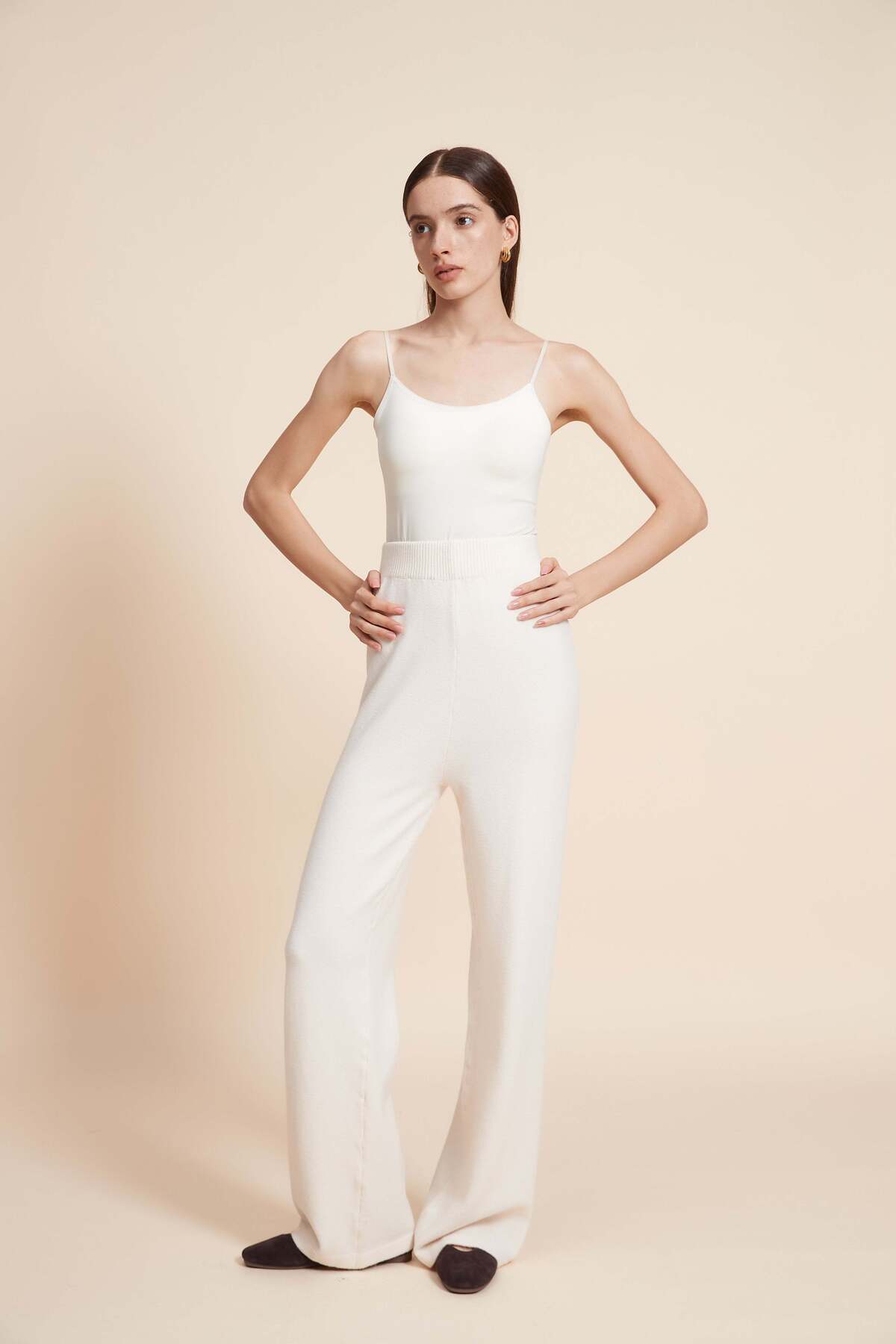 ميزات بنطال طويل واسع الساقين بلون موحد من Yola