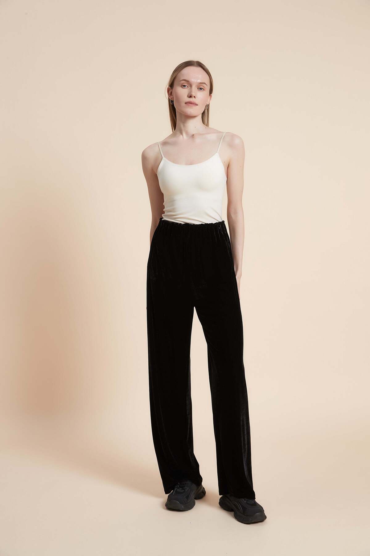 ميزات بنطال طويل واسع الساقين بلون موحد من Yola