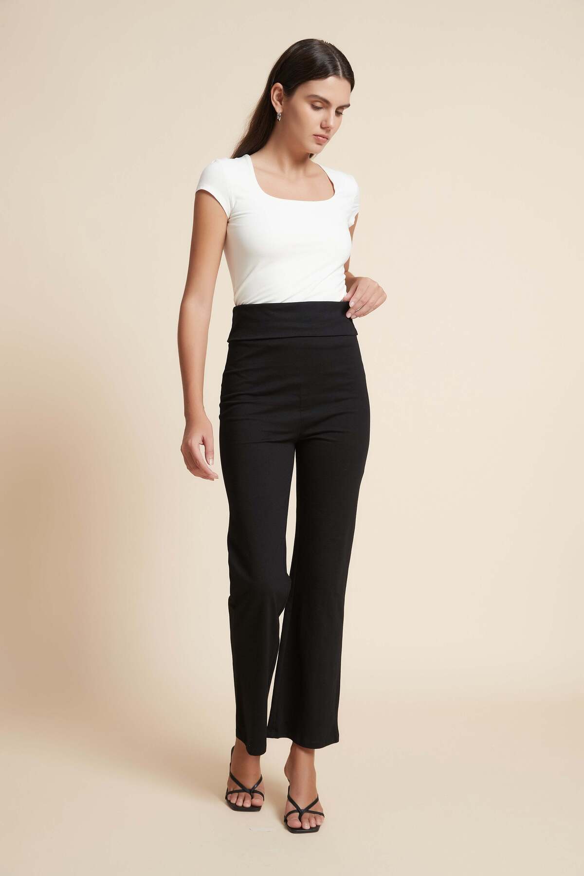 ميزات بنطلون سادة واسع الساق من Yola