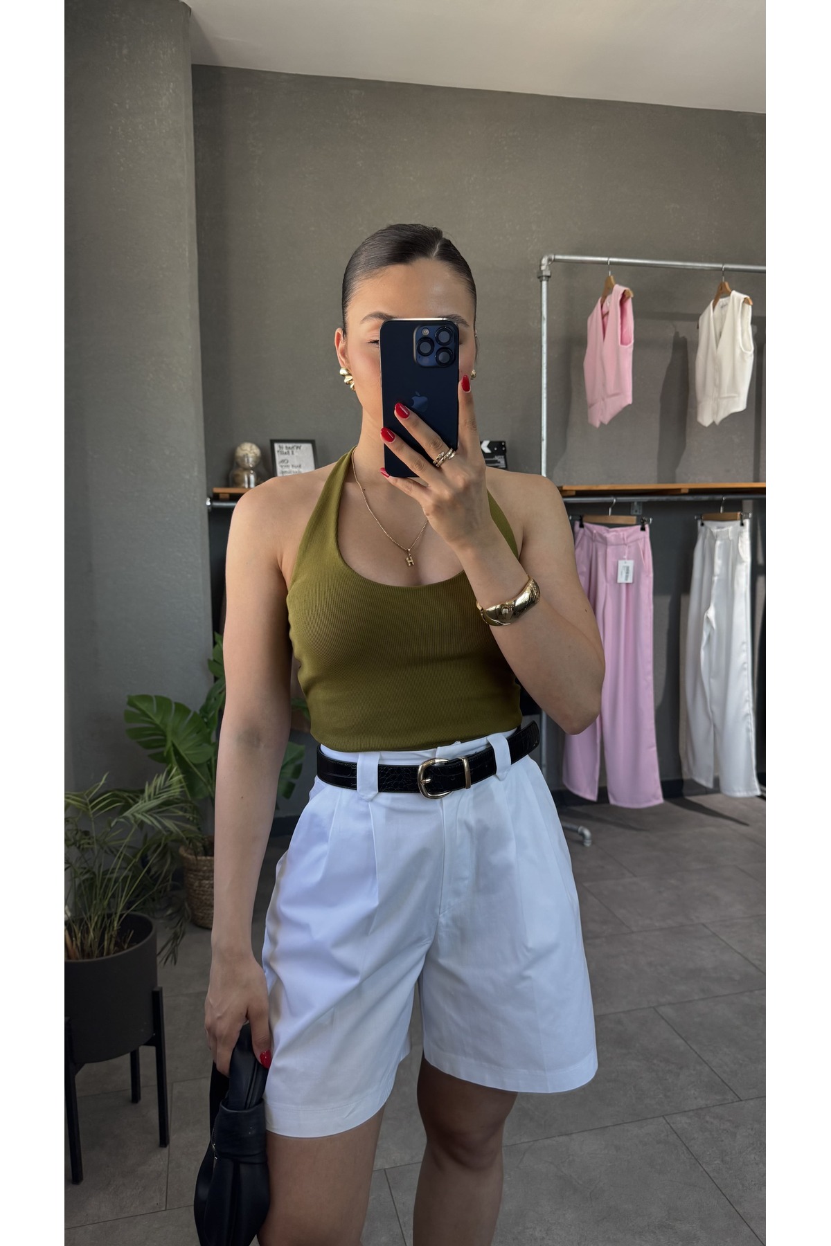 ميزات بلوزة مضلعة بياقة رسن وظهر مكشوف من YOUR NAME