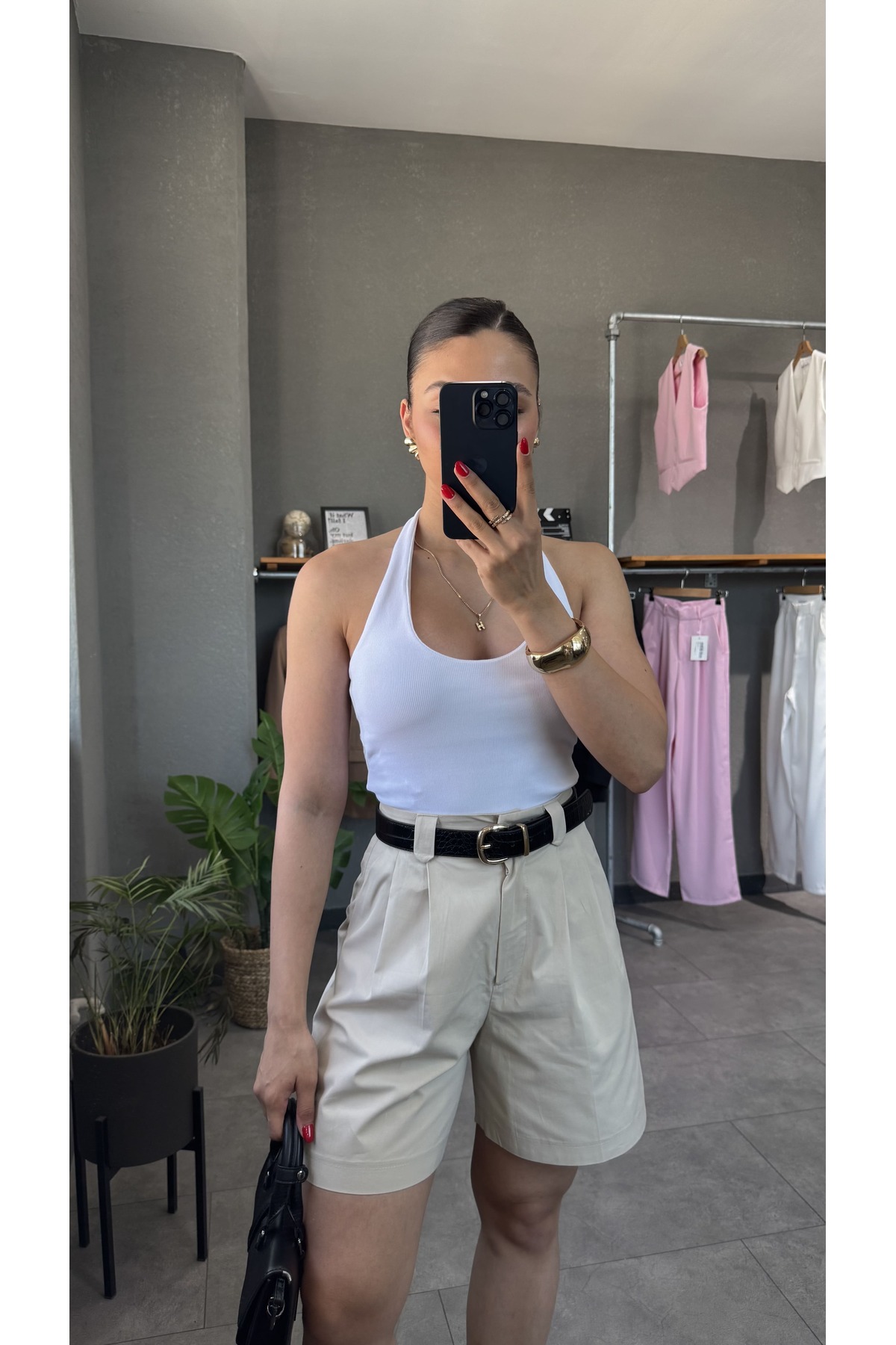 YOUR NAME بلوزة مضلعة بياقة رسن وظهر مكشوف