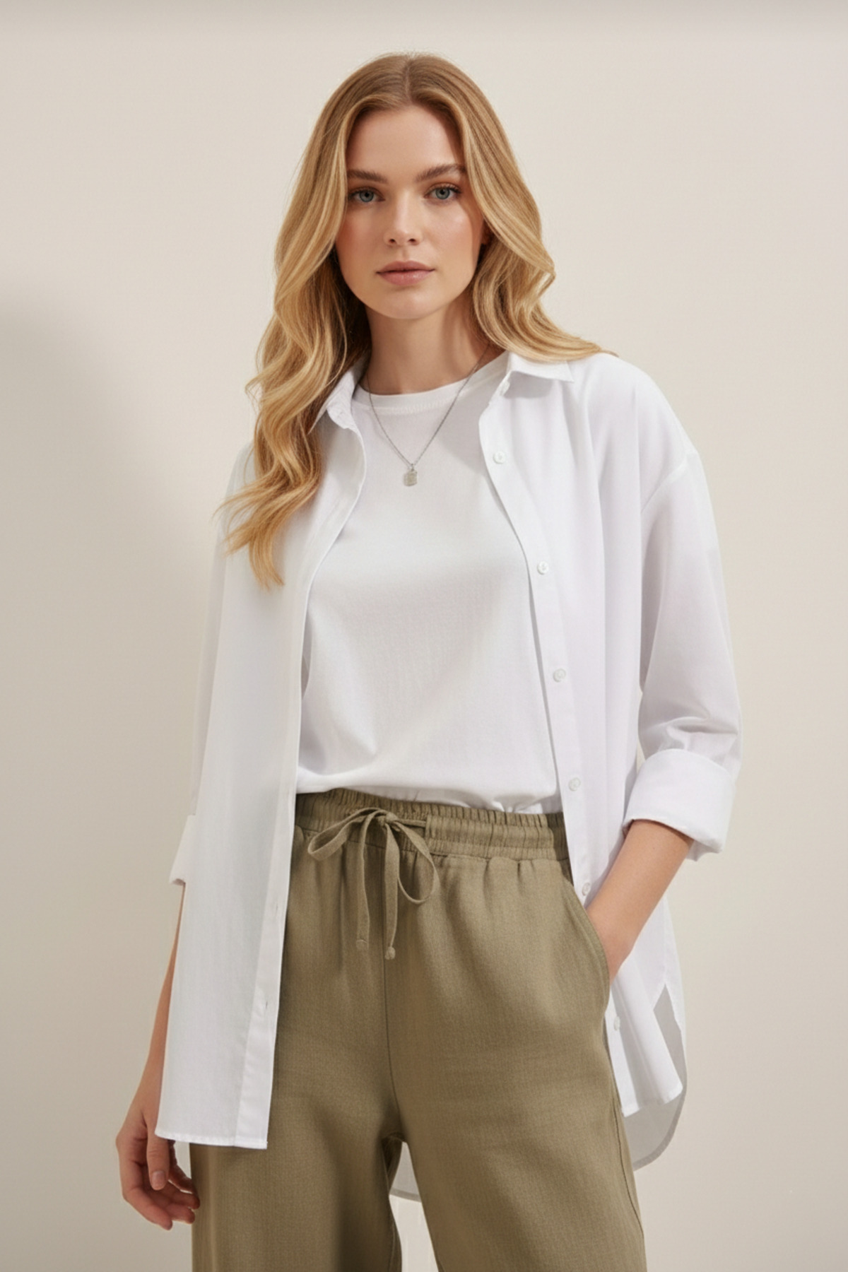 YXC Trend Maker قميص كتان أساسي طويل كبير الحجم