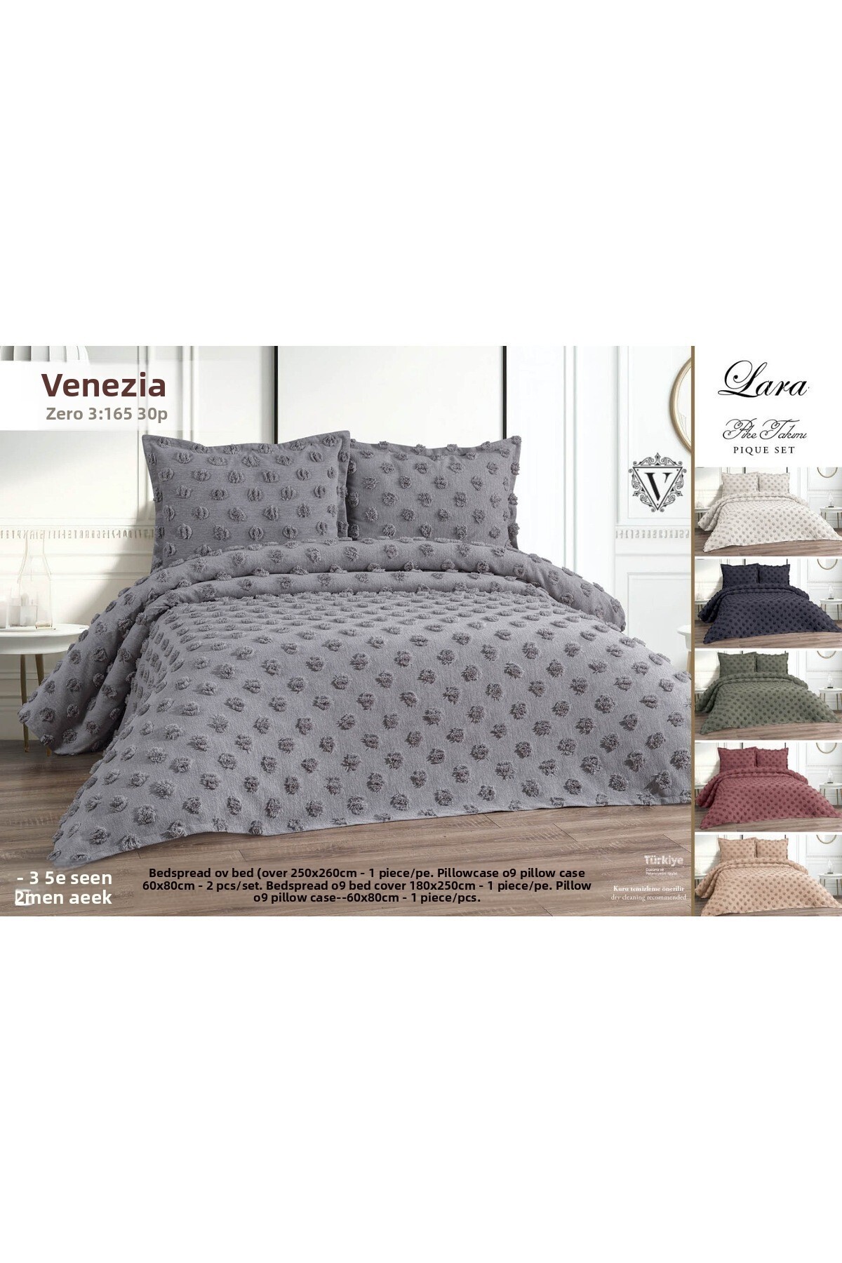 Zaimoğlu طقم مفرش سرير بوم بوم رمادي