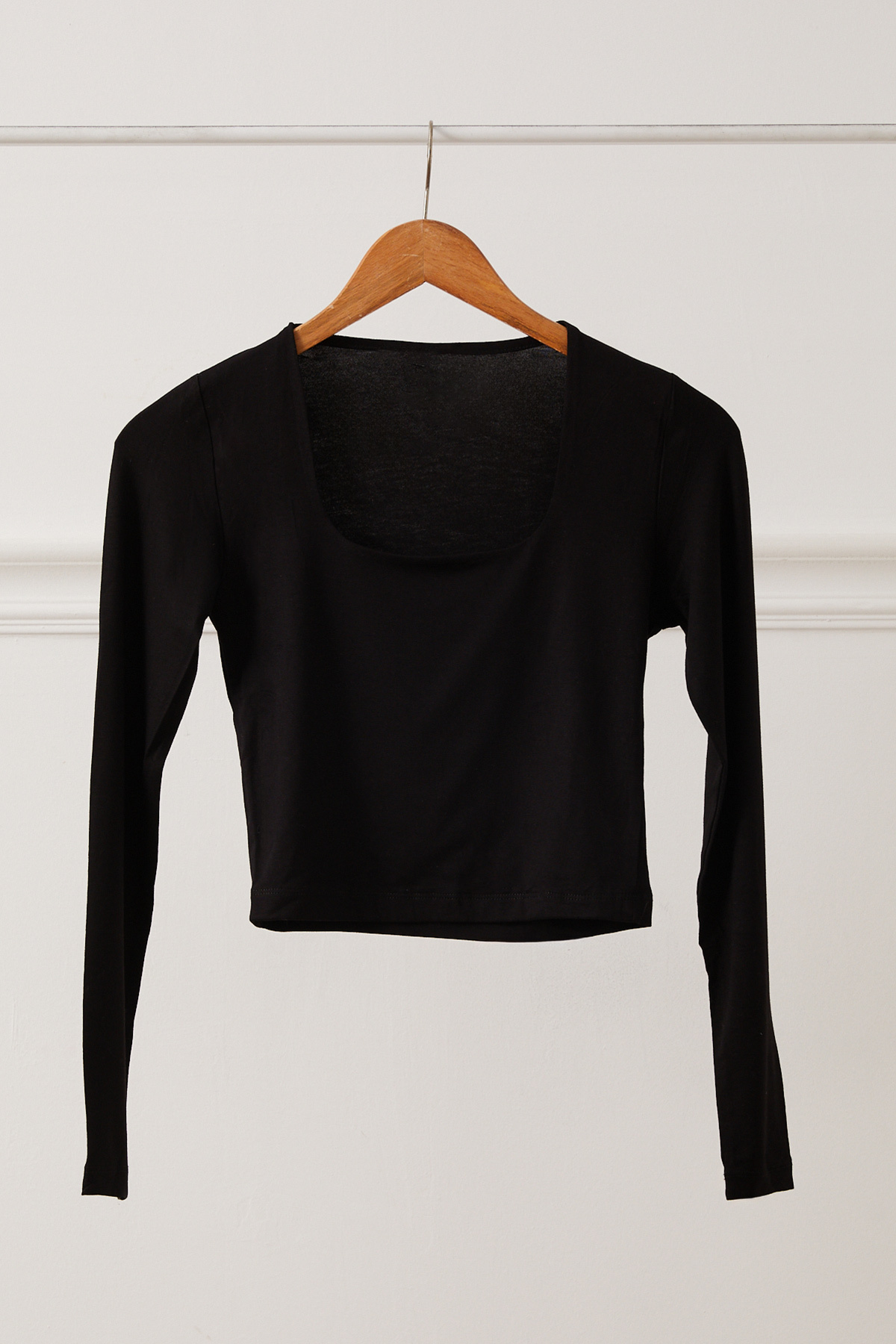 ميزات ياقة مربعة وأكمام طويلة، ملابس داخلية أساسية باللون الأسود من zenne