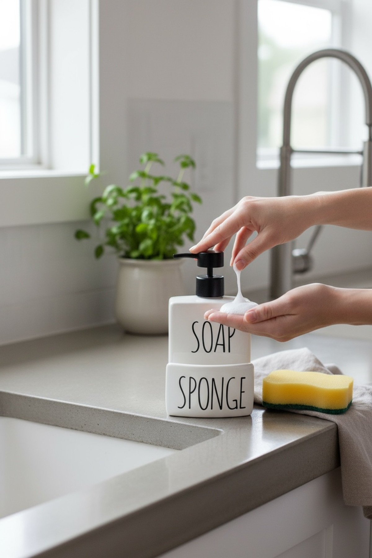zezedesing طقم صابون وإسفنجة سيراميك - صابون وإسفنجة