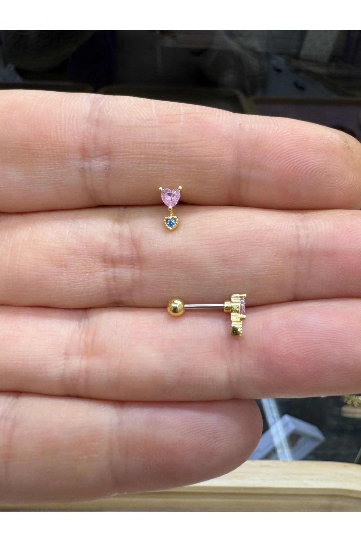 Arescollection Zirkon taşlı minimal tragus helix lobe uyumlu piercing küpe 1 adet
