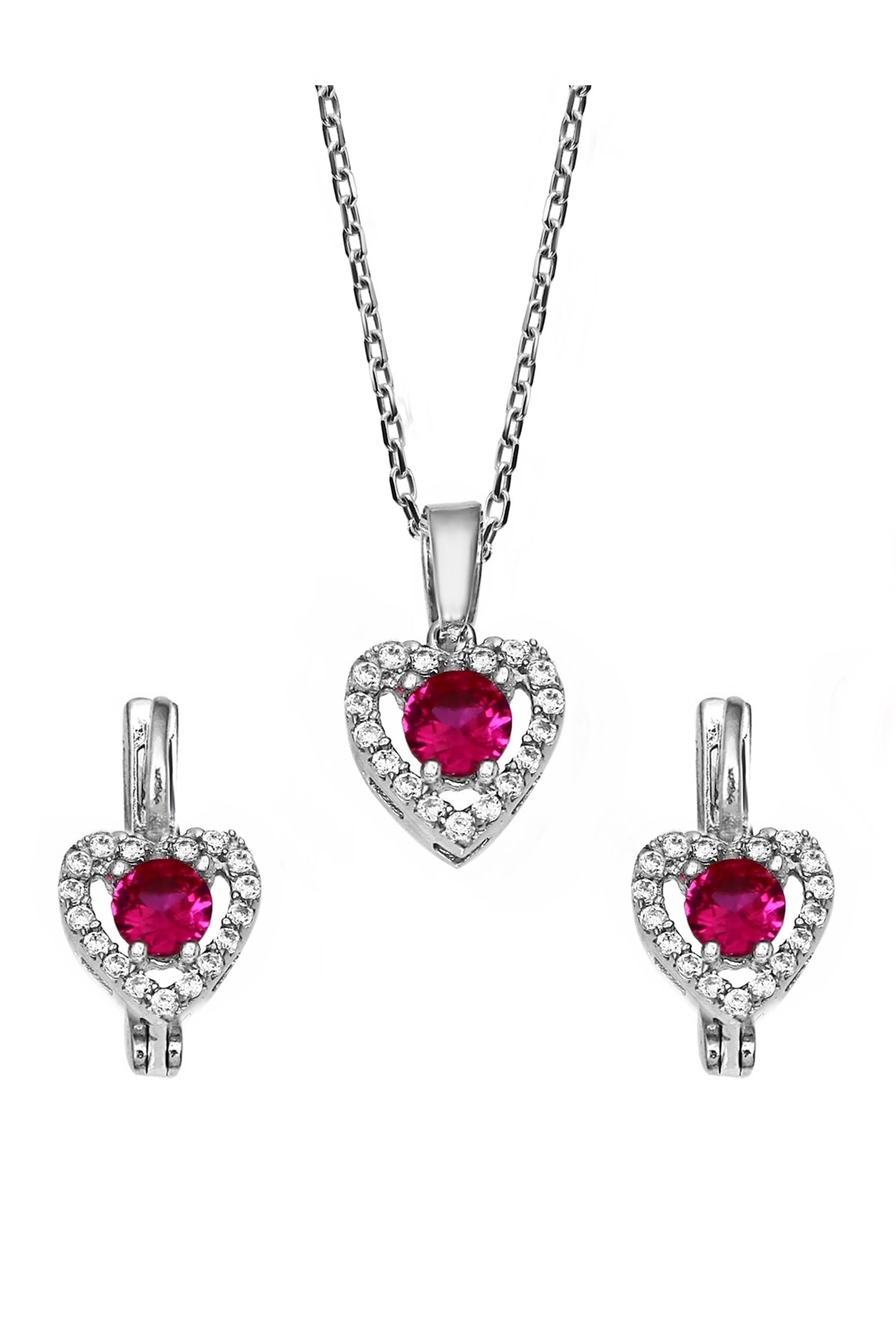 Argentum Concept 925 Ayar Gümüş Kalp Figürlü Ruby Zirkon Taşlı Set - S016802
