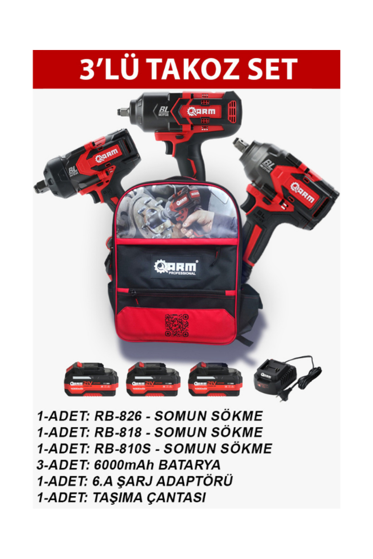 Arm 3'Lü Takoz Şarjlı Seti