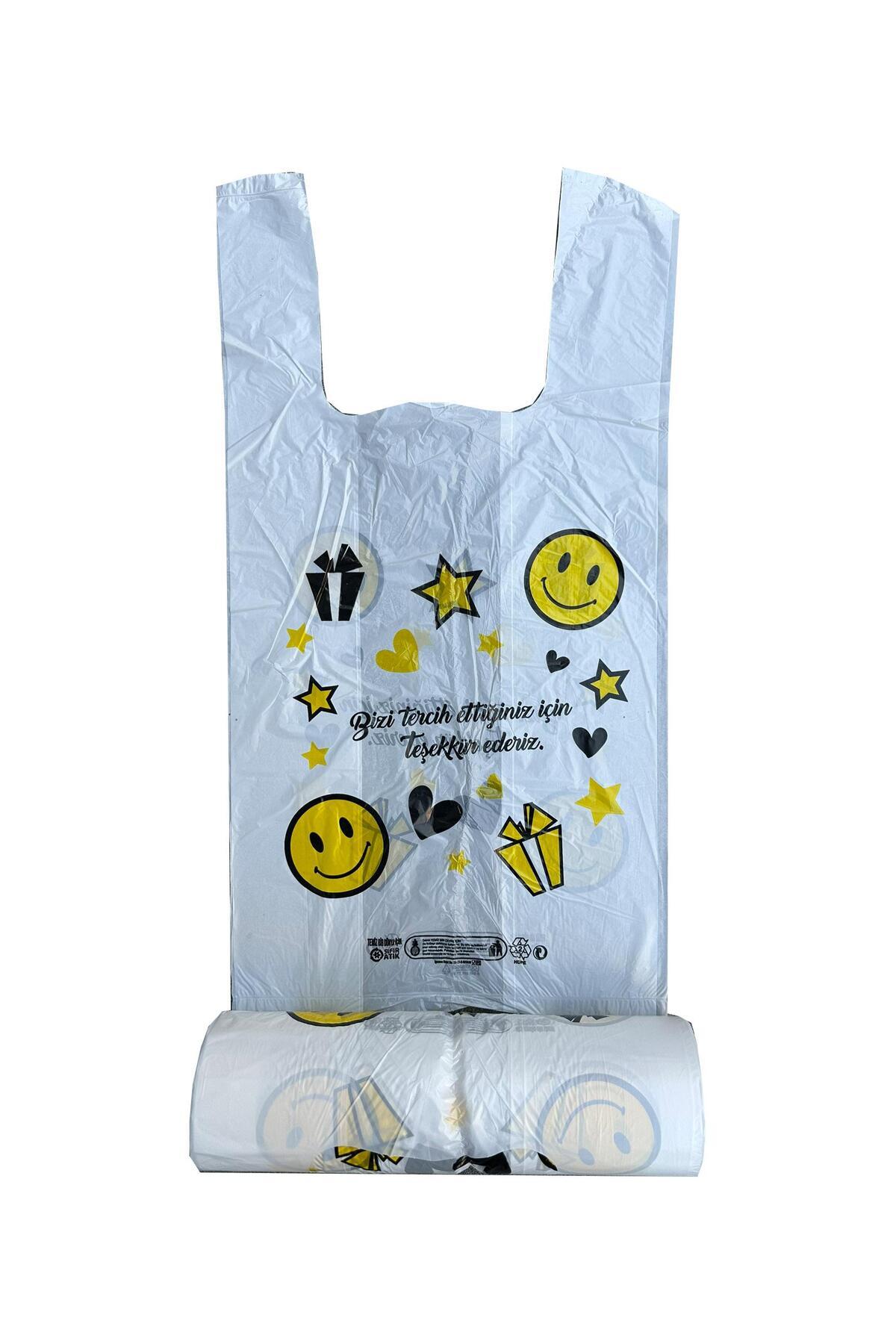 Arma Gülen Yüz Baskılı Rulo Şeffaf Market Poşet Torba - Hışır Atlet Poşet - Büyük Boy - 100 Adet