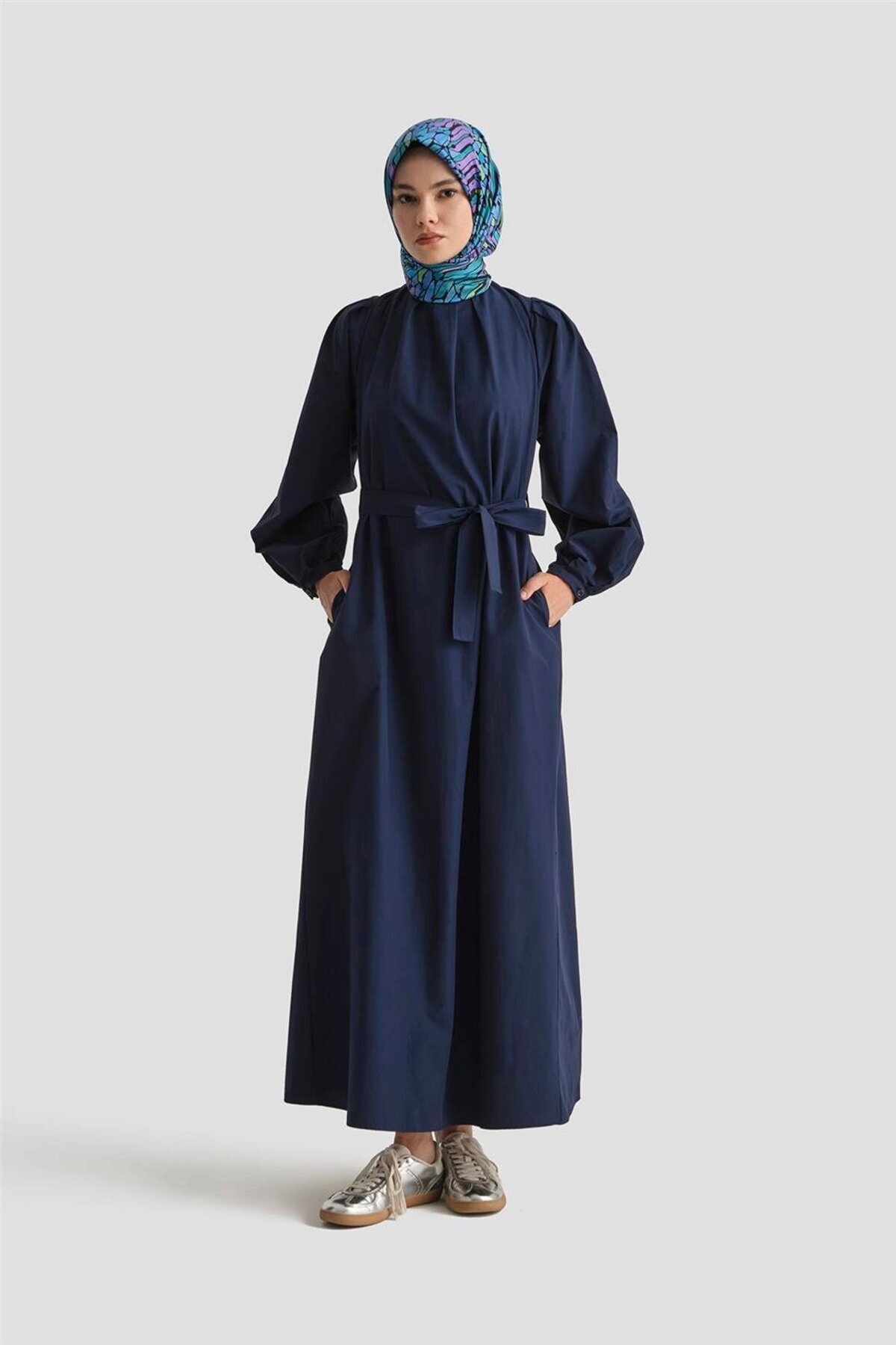 Armine Pile Detaylı Pamuk Elbise 25Y9024 Lacivert