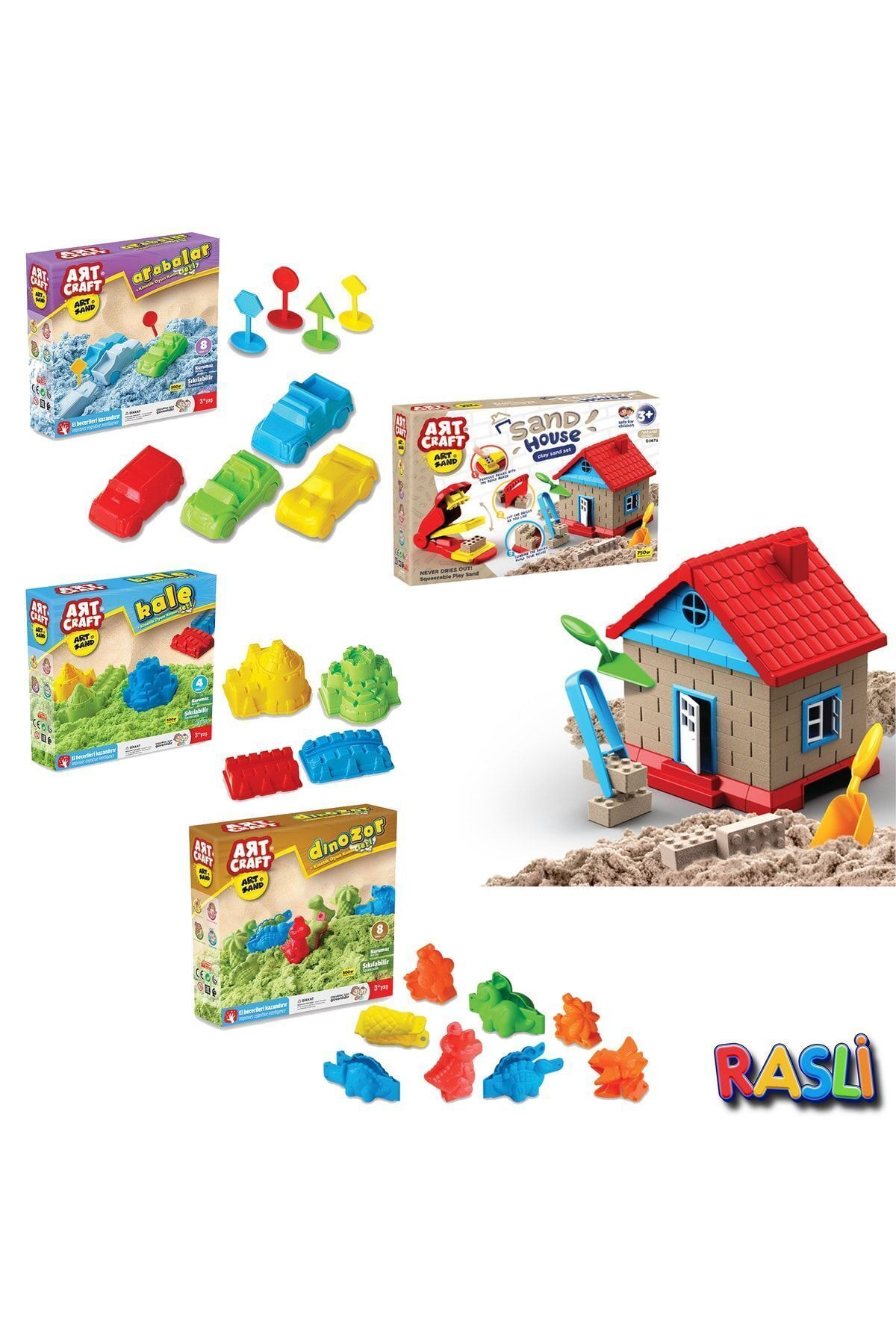 Art Craft Kinetik Oyun Kumu Seti - Kum Ev, Arabalar, Dinazor, Kale Kum Seti