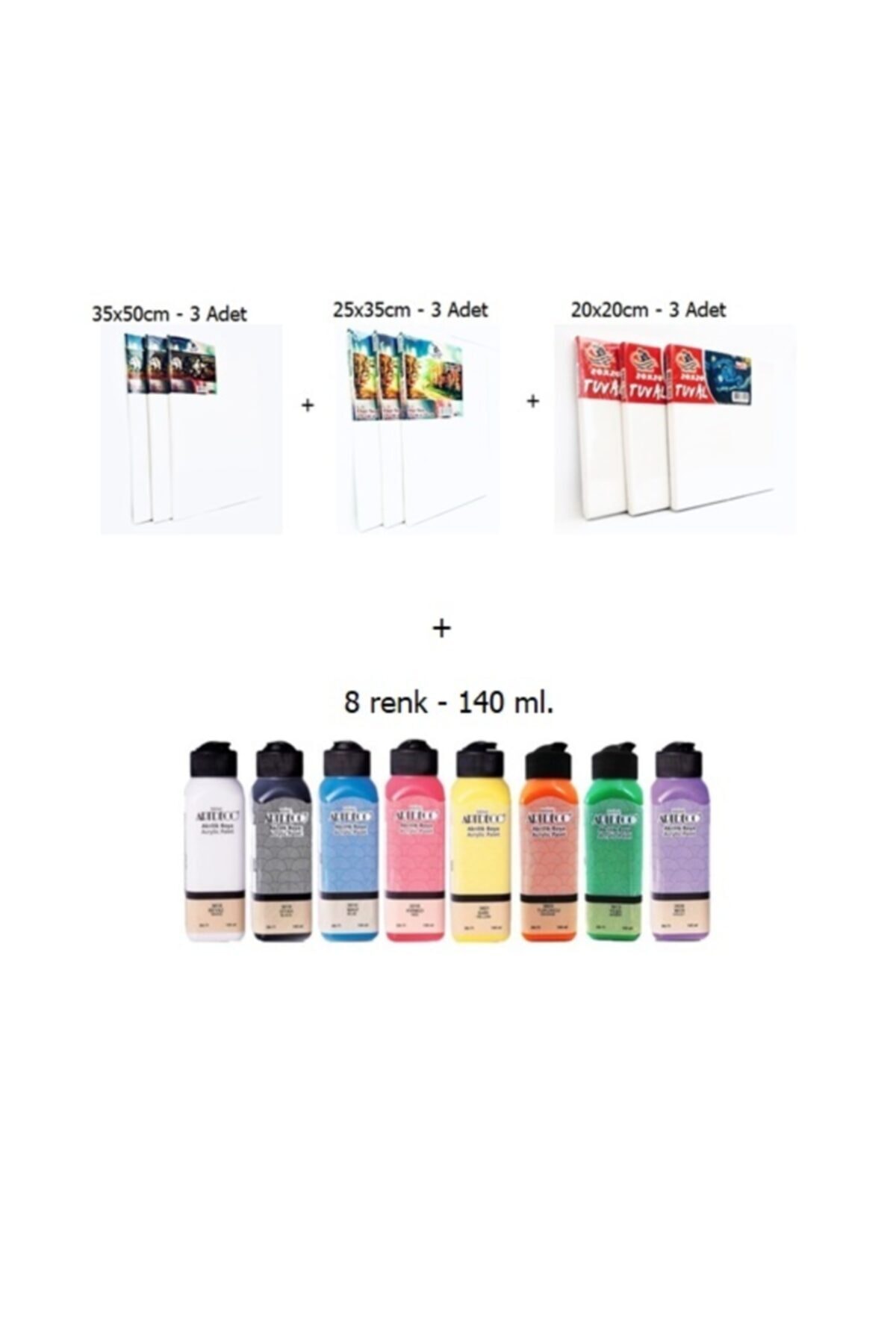 Artdeco Akrilik Boya 8'li 140ml + Aşkar 9'lu Tuval Seti