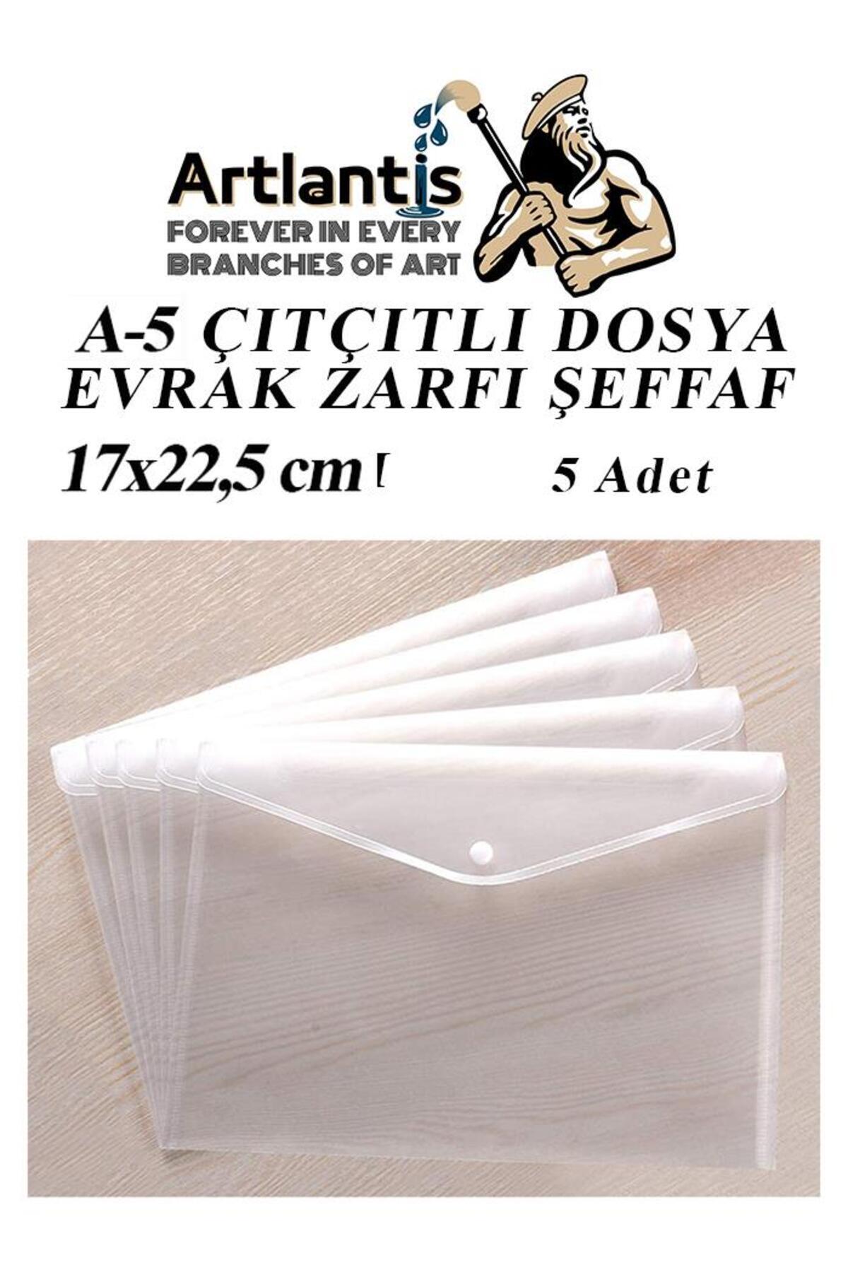 Artlantis A5 Çıtçıtlı Dosya Şeffaf 5 Adet A-5 Çıtçıtlı Zarf Dosya Transparan 17x22.5 cm Küçük Boy Çıtçıtlı Dos