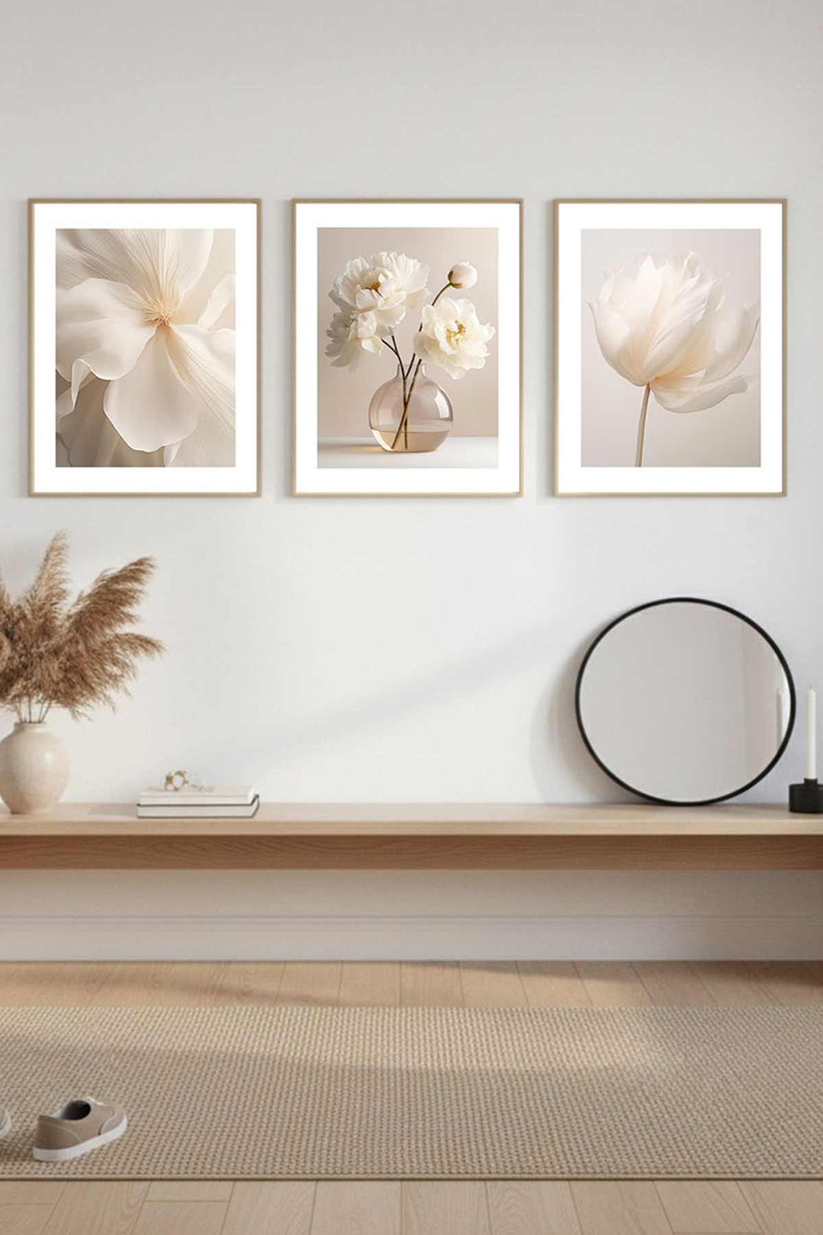 Artte Ahşap Çerçeveli Botanik 3lü Tablo Set