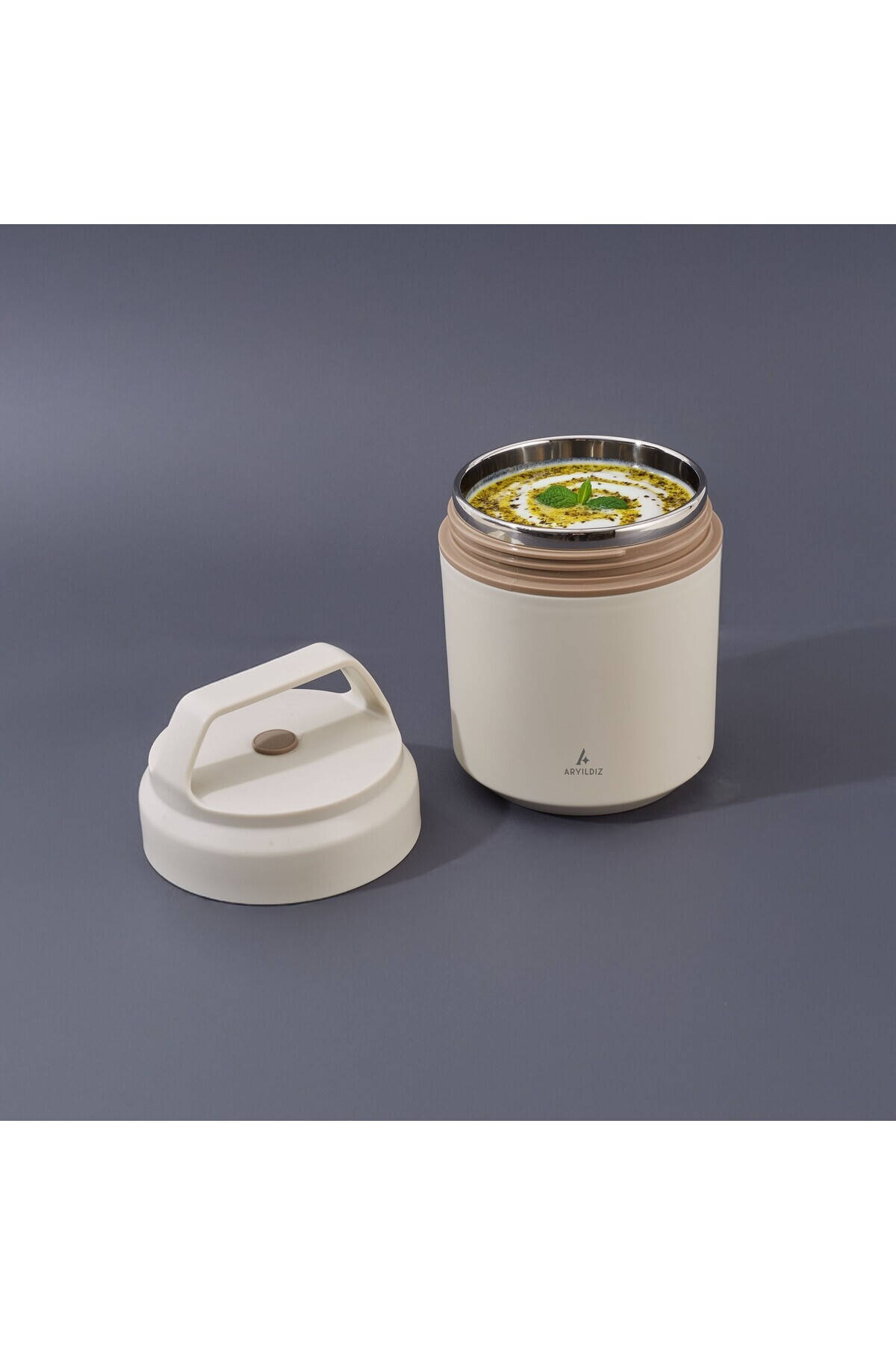 Aryıldız Bento Yuvarlak Lunch Box Yemek Termosu Bej 420 ml