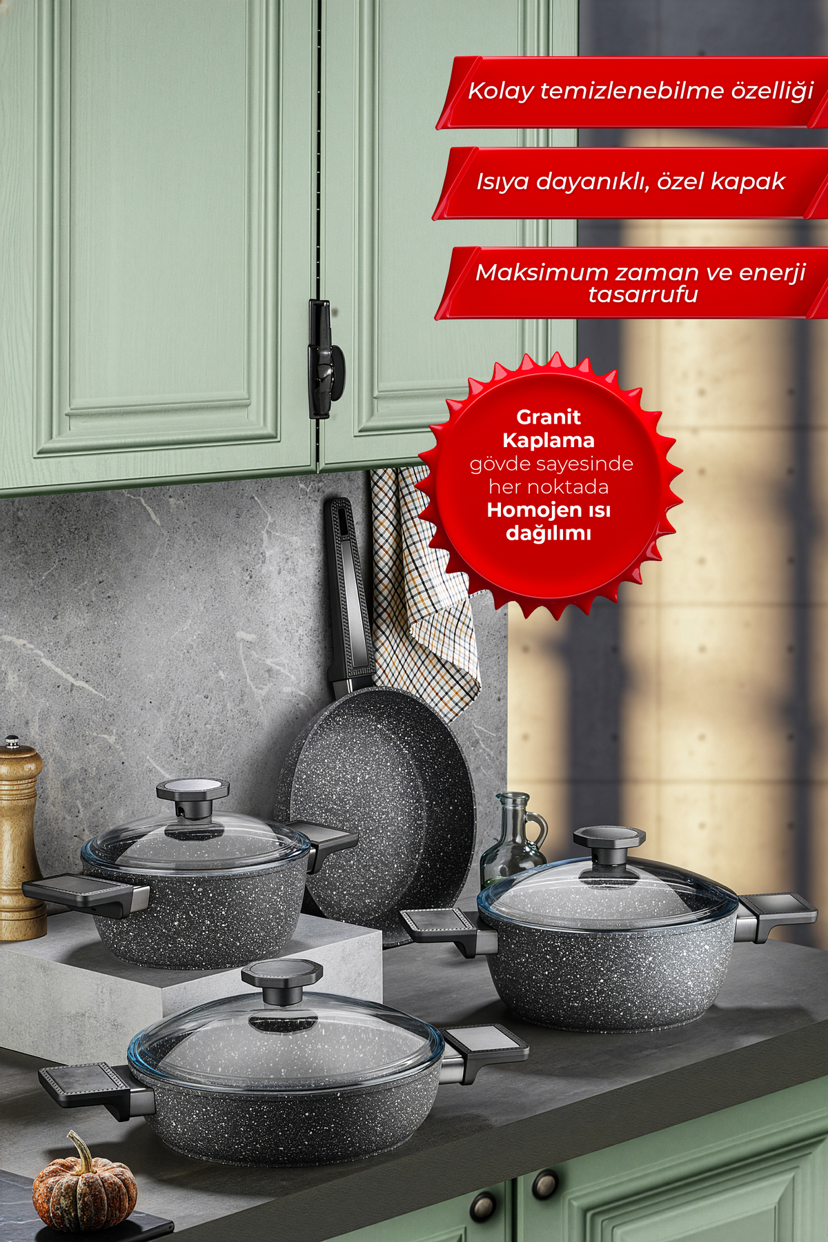 Aryıldız Vortex Granitium 7 Parça Tencere Seti Özellikleri