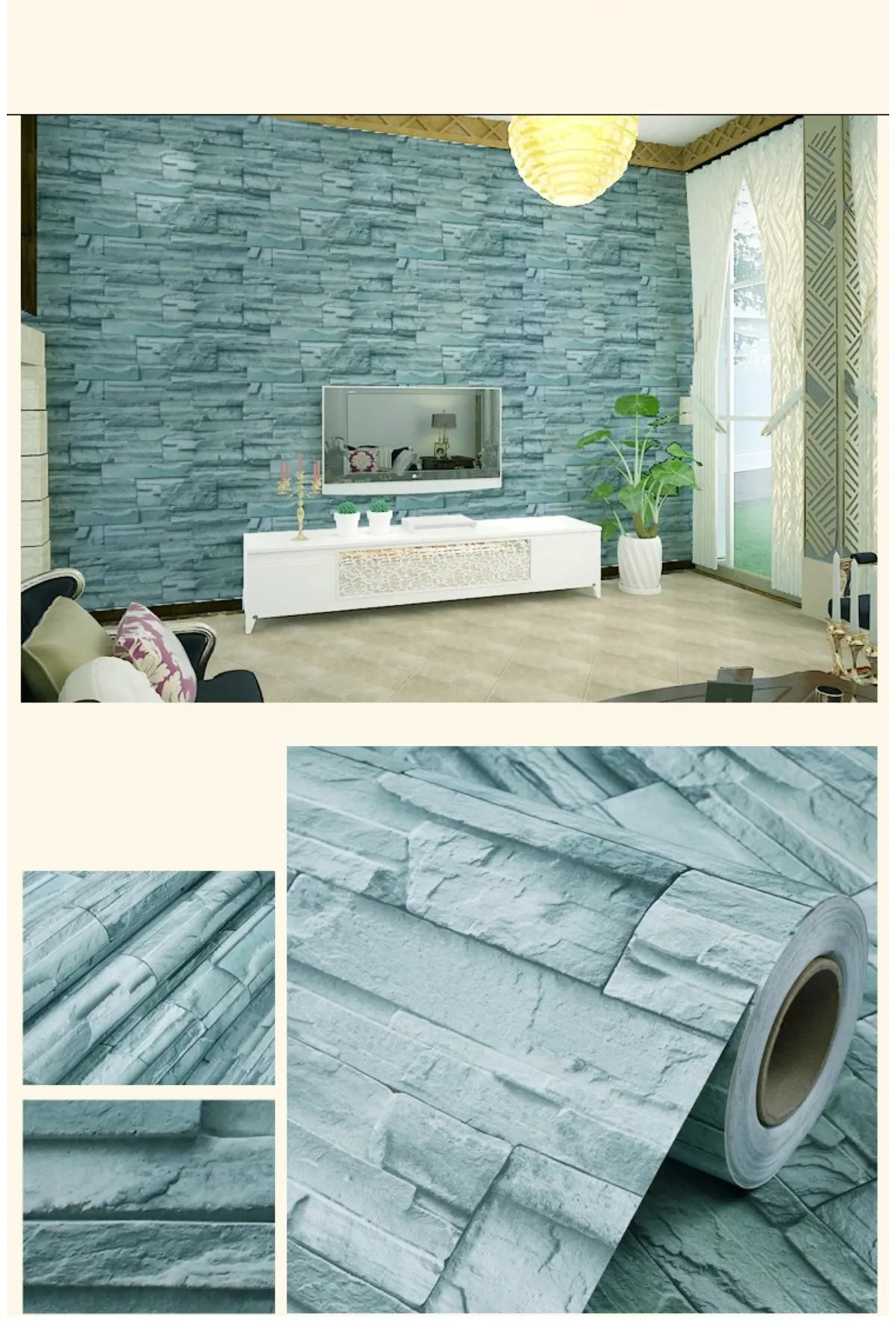 Askımo 3 Metre 60 Cm Mavi Tuğla Taş Desenli Kendinden Yapışkanlı 3d Duvar Raf Kapı Kaplama Kağıdı