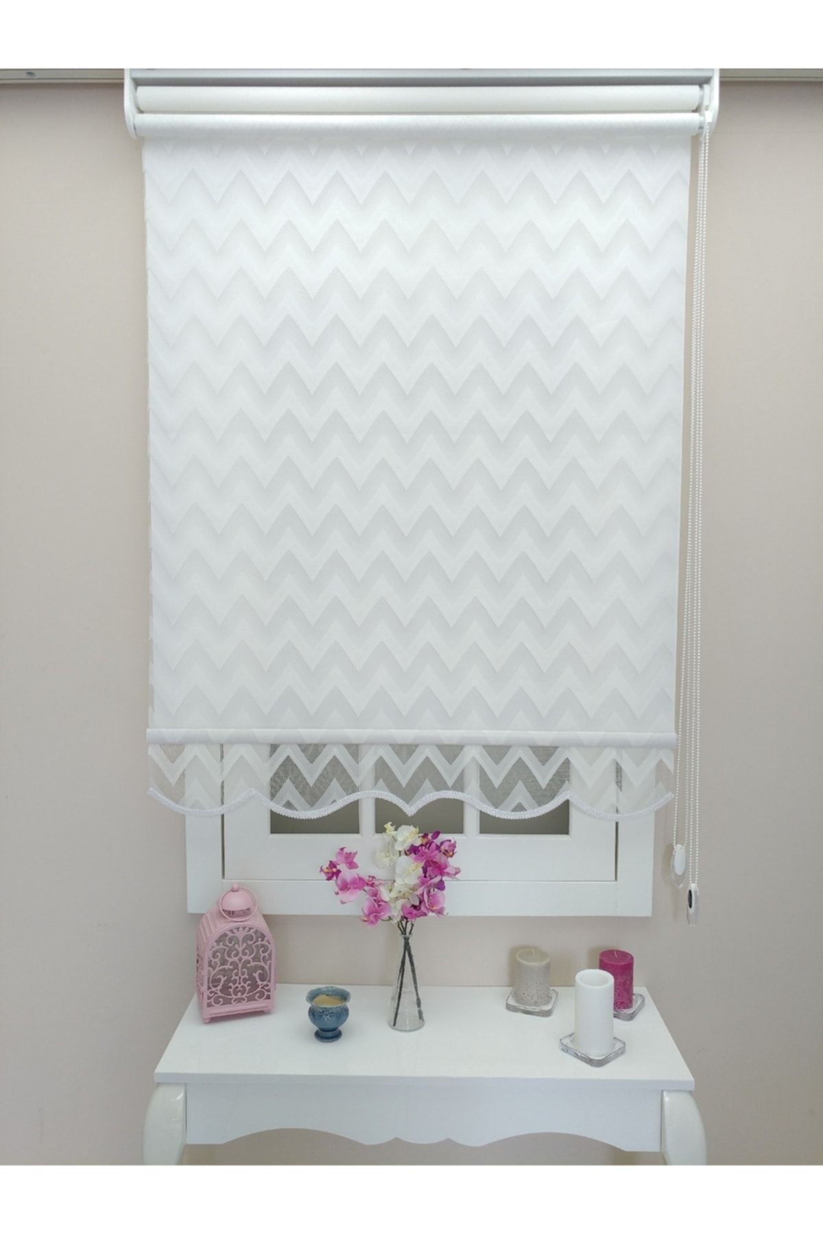 Atölyeperde Çiftli Sistem Örme Zigzag Desenli Stor Perde
