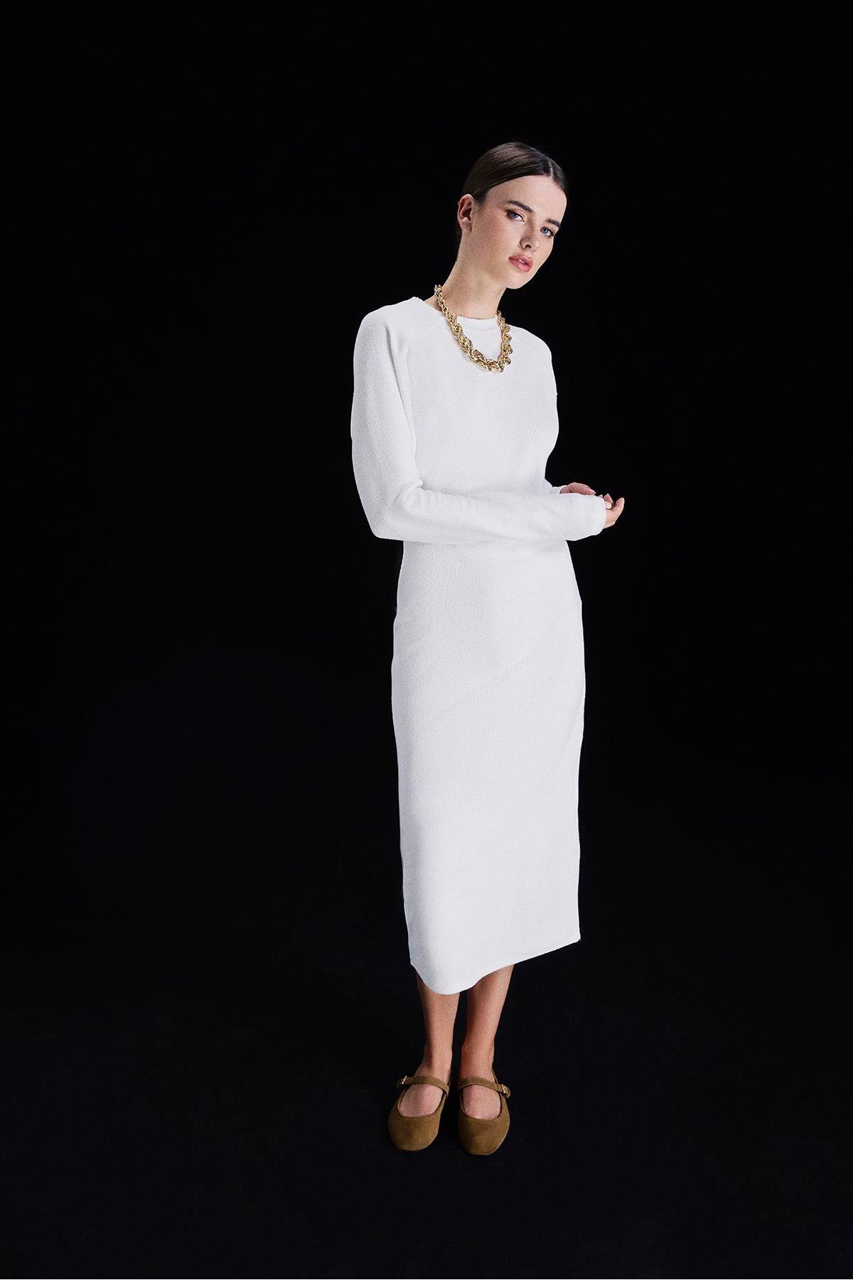 AURA BEA ESNEK BASİC ÖRME ELBİSE EKRU
