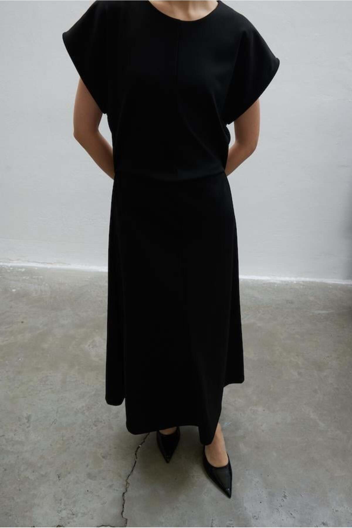 AURA BEA SIFIR KOL ÖRME ELBİSE SİYAH